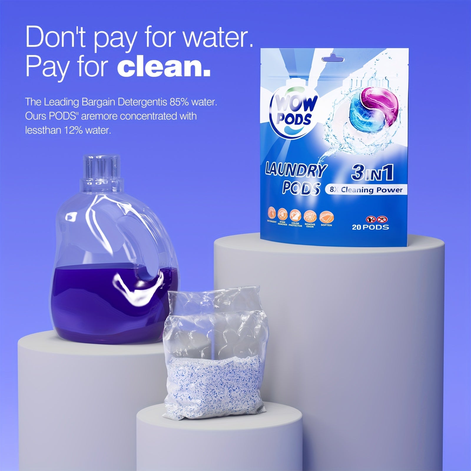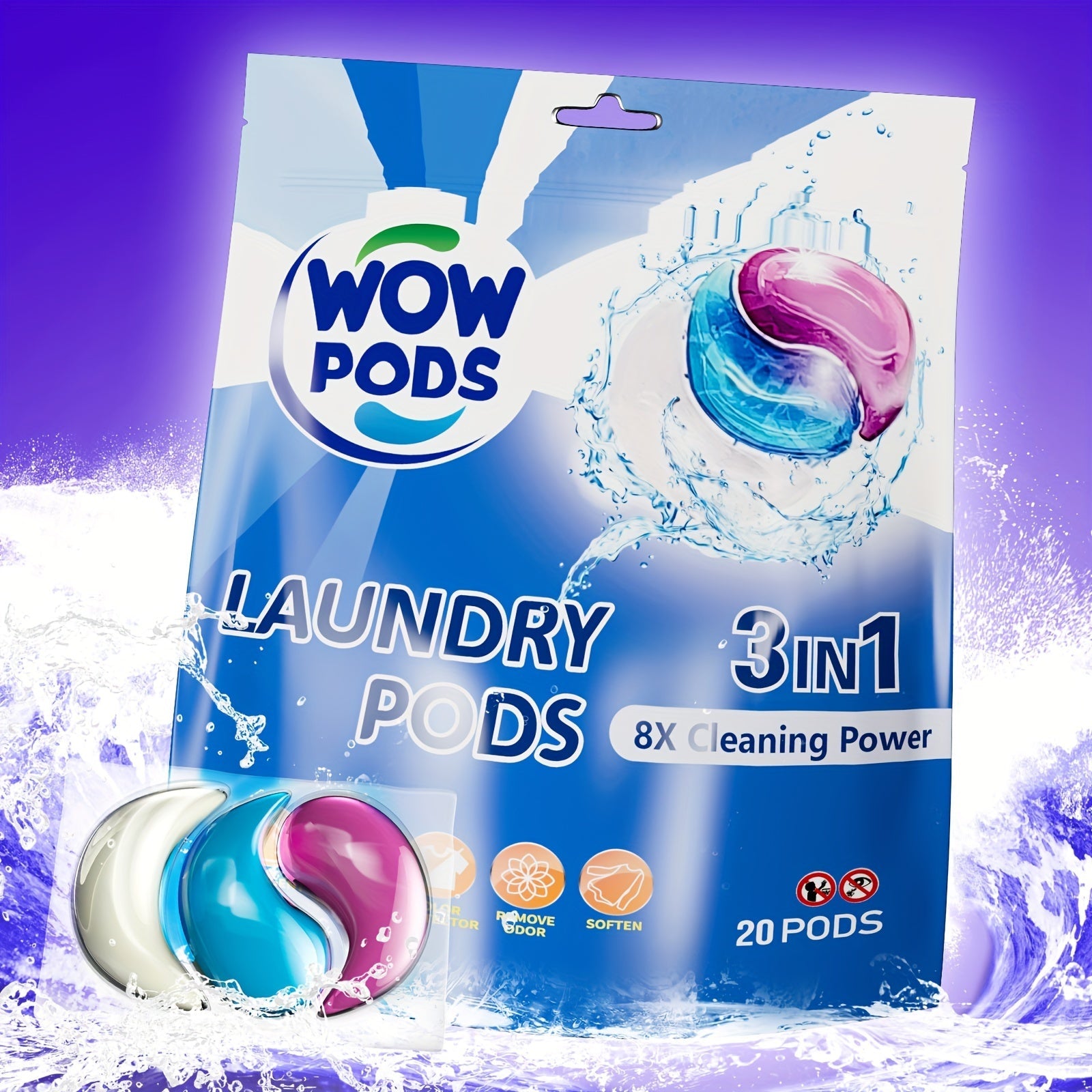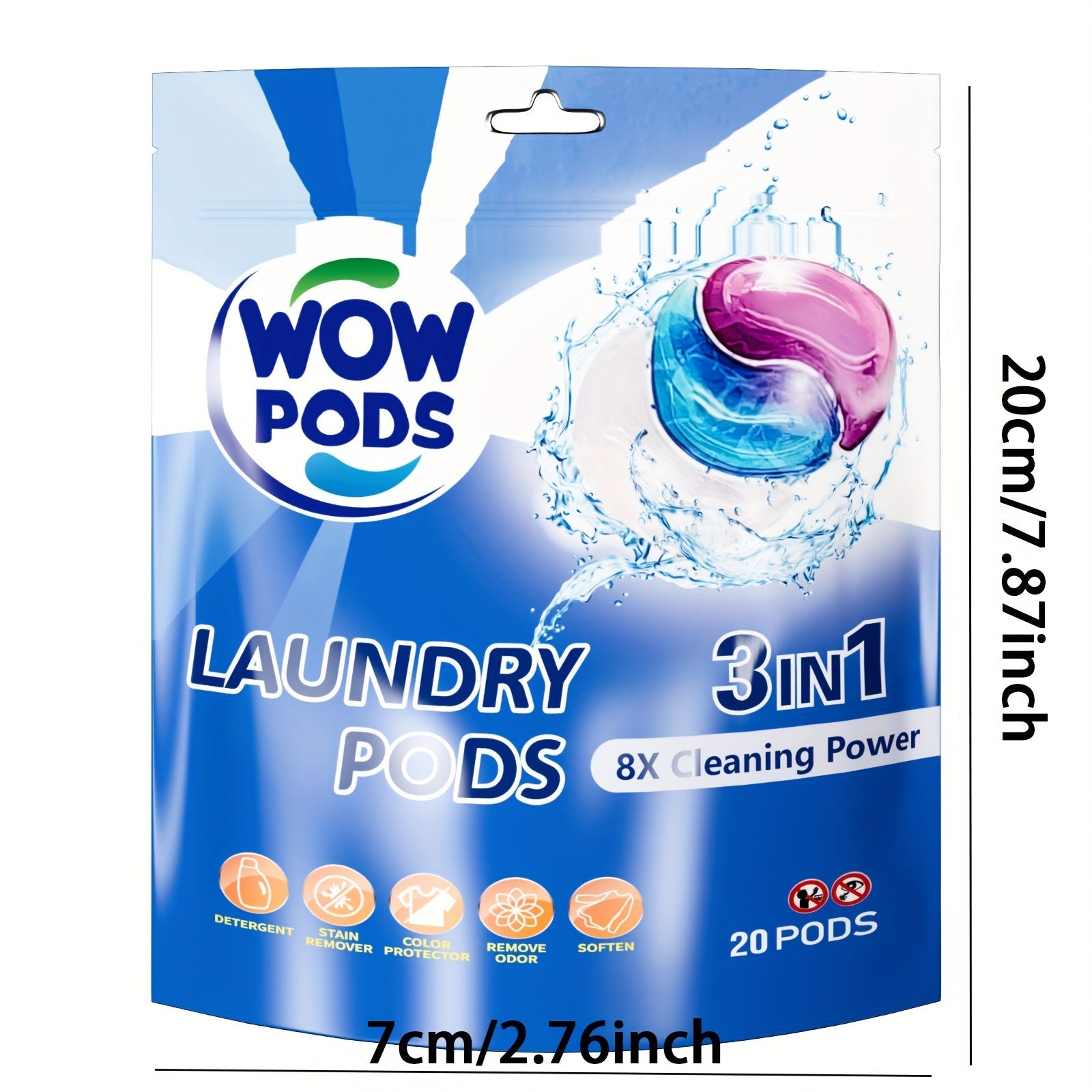 Kiyim tozalash kapsulalari 20 ta, yumshoq, tozalash, dog'larni olib tashlash, yangi hidi