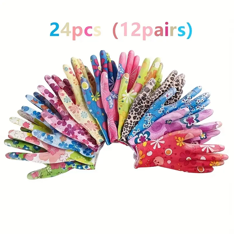 Nylon bog' qo'lqoplari 6, 10, 12 yoki 24 dona mavjud. Ekish, begona o'tlarni tozalash, urug' ekish uchun moslashuvchan barmoq himoyasi. Ko'pchilik ayollar uchun mos.