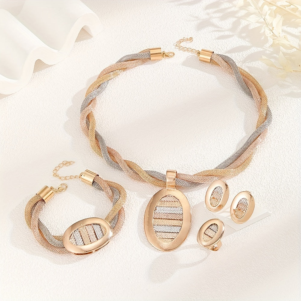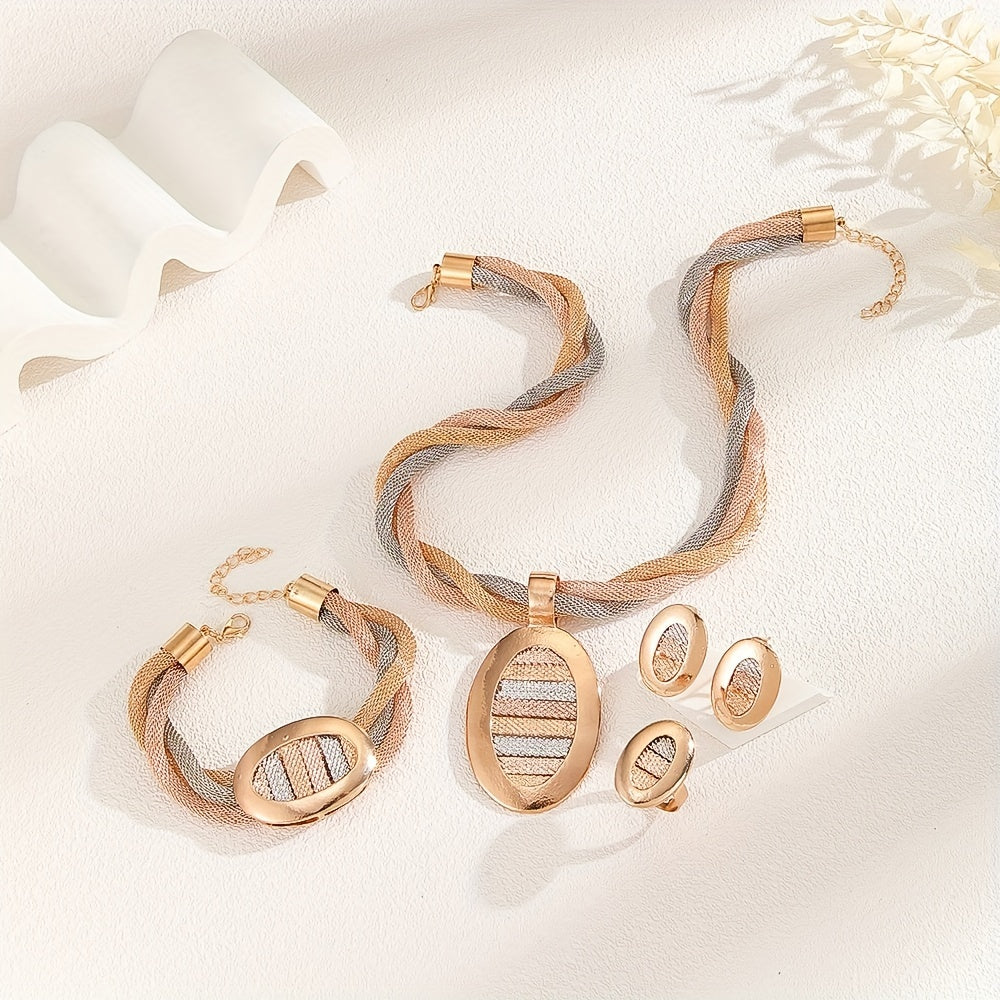 Oktyabr tug‘ilgan kunlariga mo‘ljallangan zargarlik buyumlari to‘plami, vintage boho uslub, 5 ta element, sintetik, oltin qoplamali