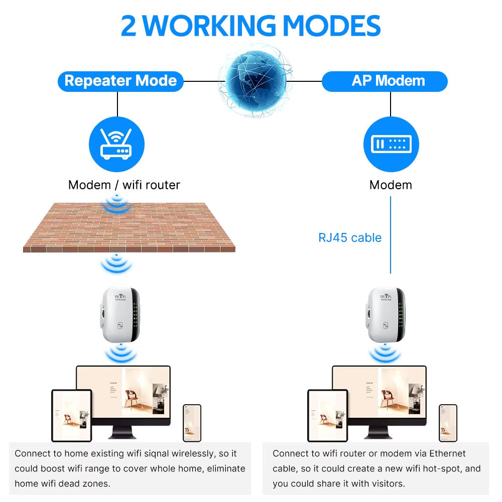 OEKE WiFi takrorlagichi, AQSh vilkasi bilan, uy va ofis uchun WiFi qamrovi, uzoq masofa, super signal, oson ishlatish, ixcham dizayn.