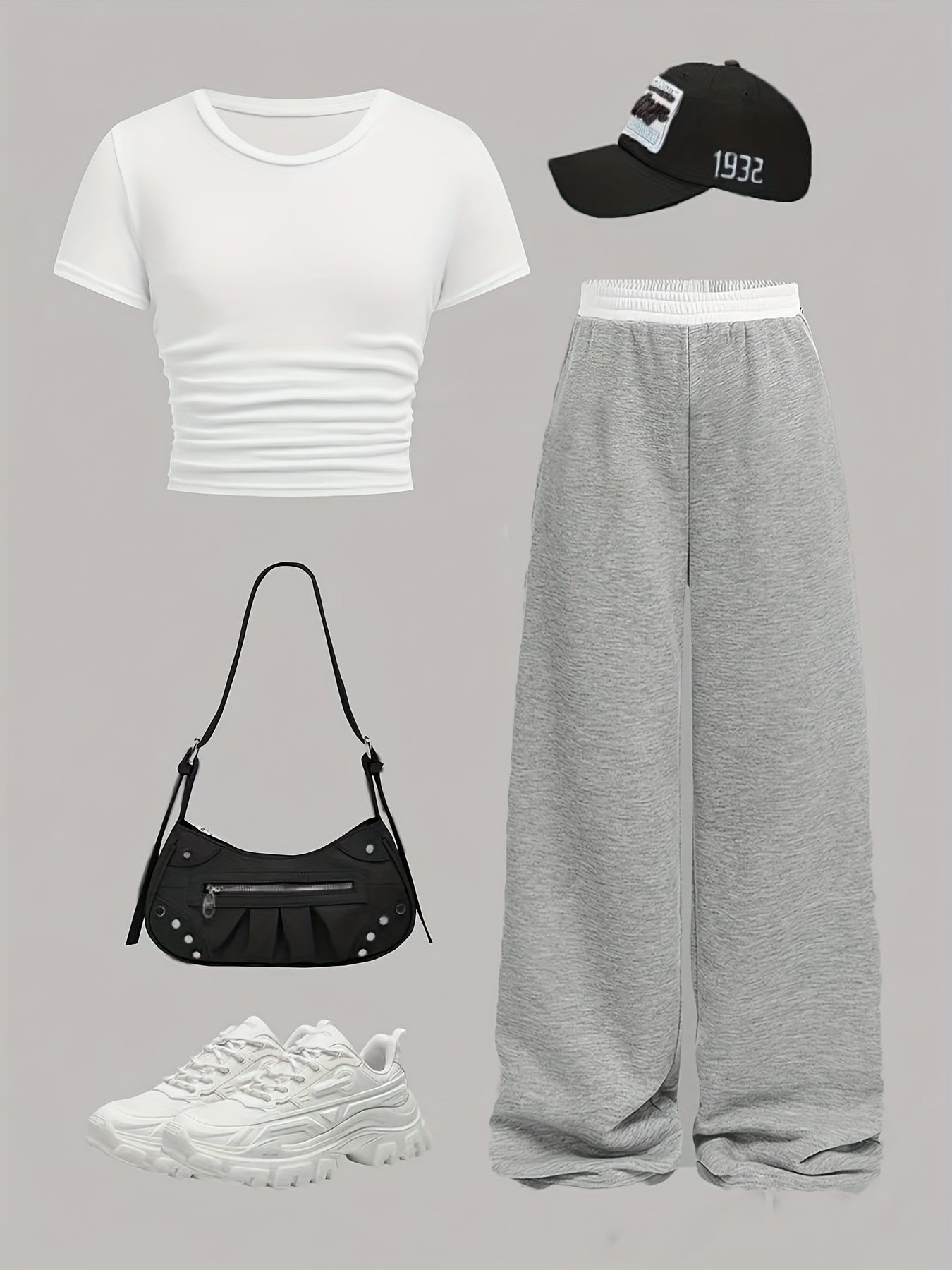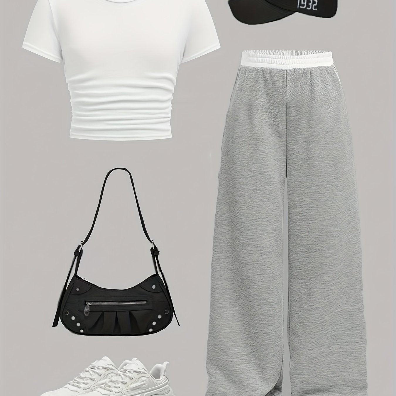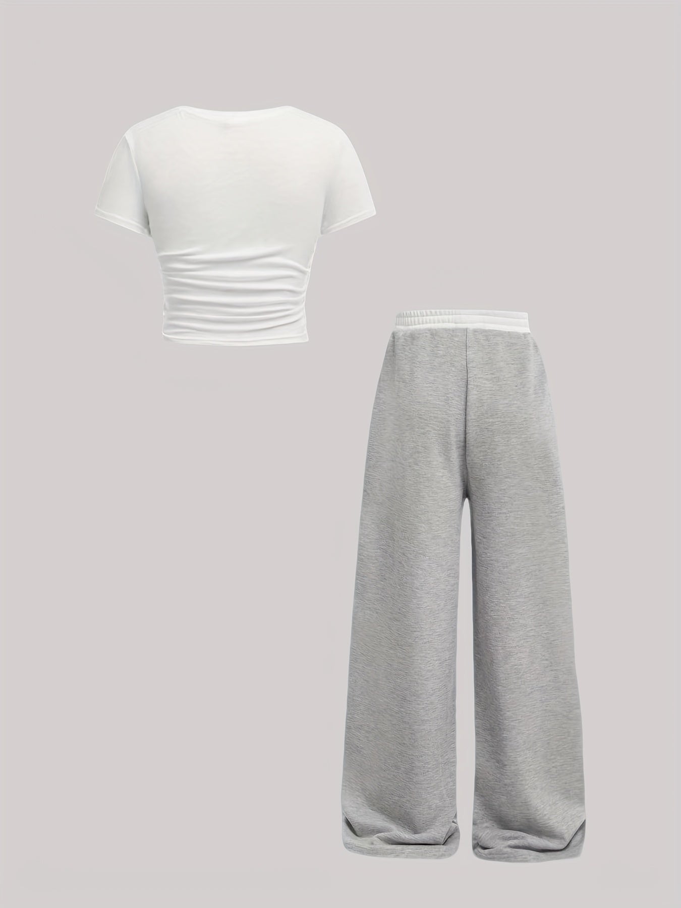 Katta qizlar uchun zamonaviy yon qirqimlar, bir xil rangdagi yuqori qism va to'g'ri oyoq shimlar bilan qulay bahor va yoz ko'rinishi.