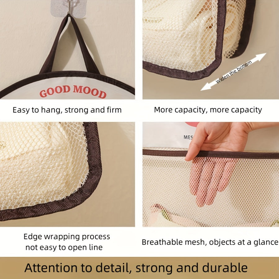 Bej Polyesterli Osilgan Tarmoq Saqlash Sumkasi To'rtlik Devorga O'rnatiladigan Kir yuvish Tashkilotchisi Ichki kiyimlar, paypoq uchun