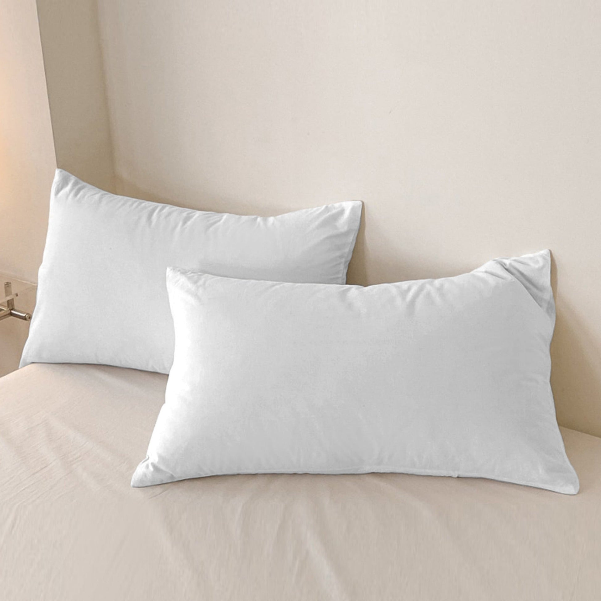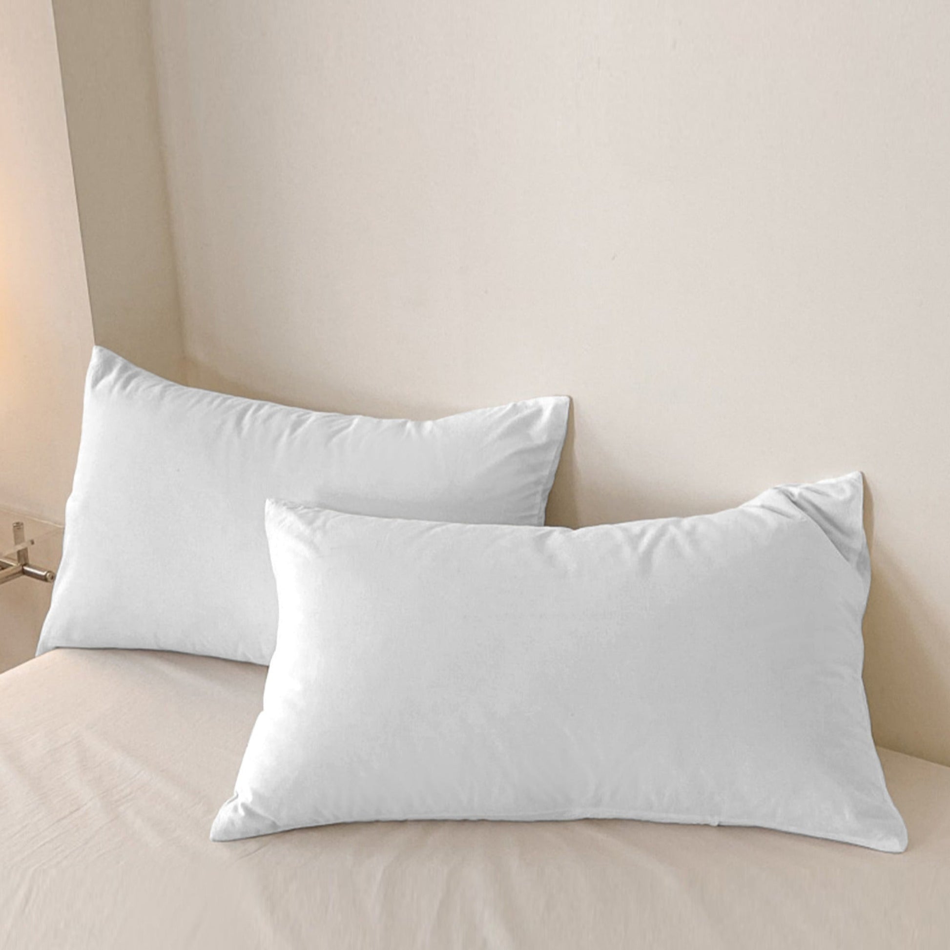 Bir yoki ikki dona oq yostiq qoplami, yostiq markazisiz, yumshoq va nafas oladigan matodan tayyorlangan. Bu yostiq qoplamalari yumshoq, qulay va yotoqxona, mehmonxona, mehmonxona, mehmonxona, B&B va maktab yotoqxonalari uchun mos.