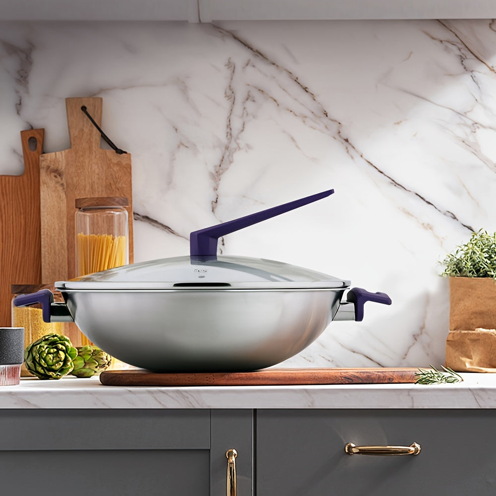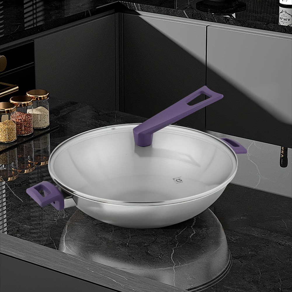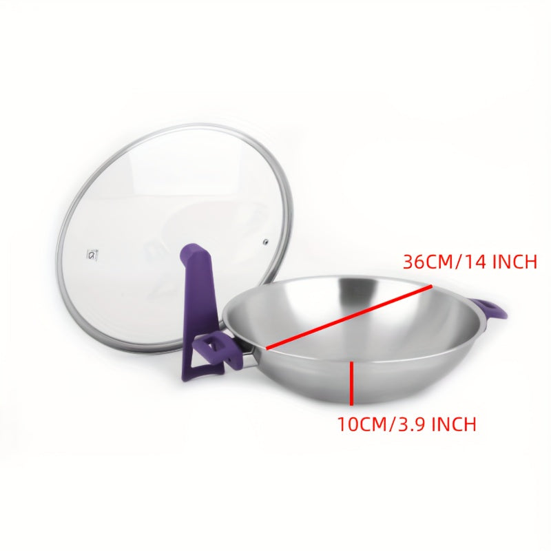 35.56 sm zanglamas po'latdan yasalgan bir dona wok, shisha qopqoq bilan, katta sig'imga ega va barcha pech turlari uchun mos. Qovurish pishirish uchun ideal.