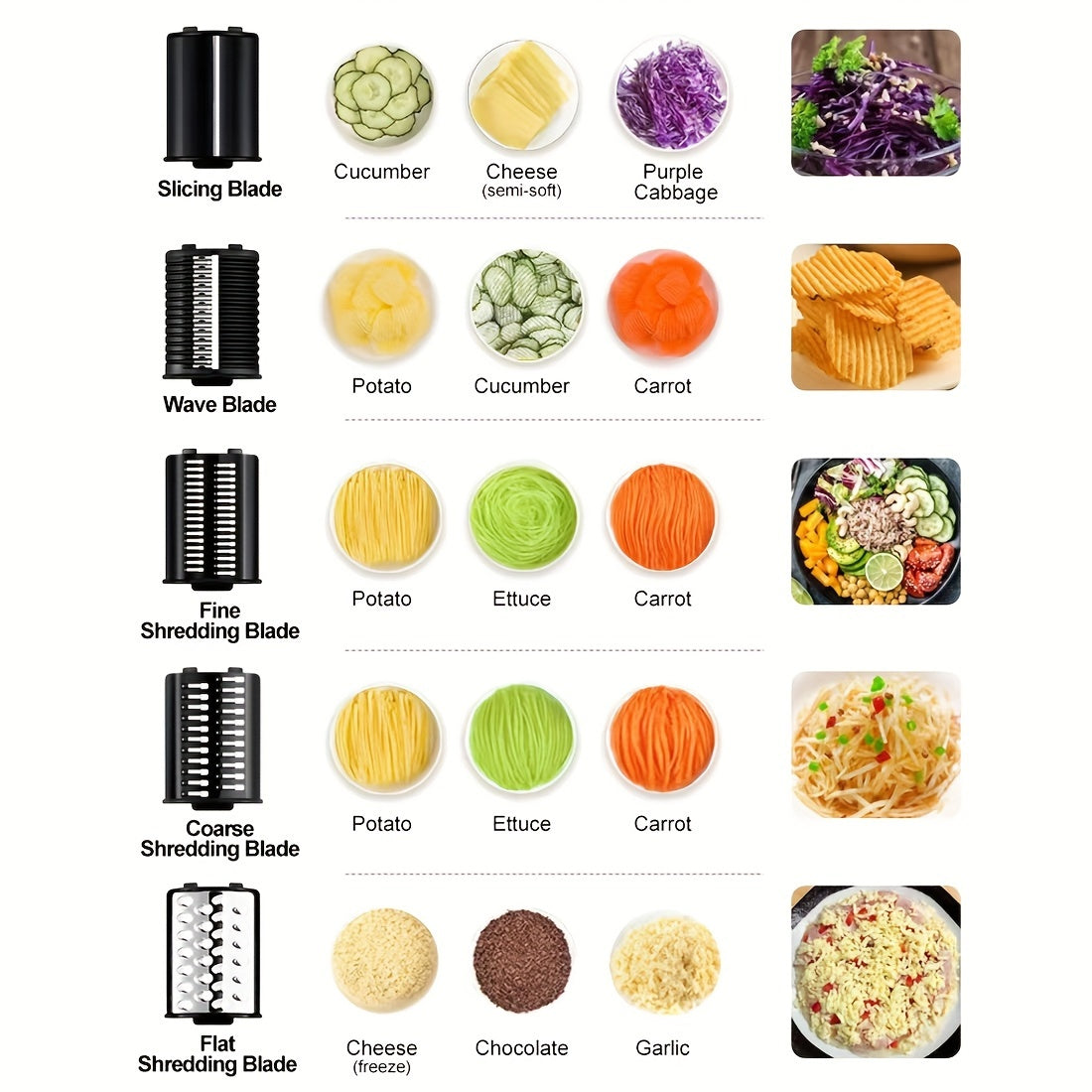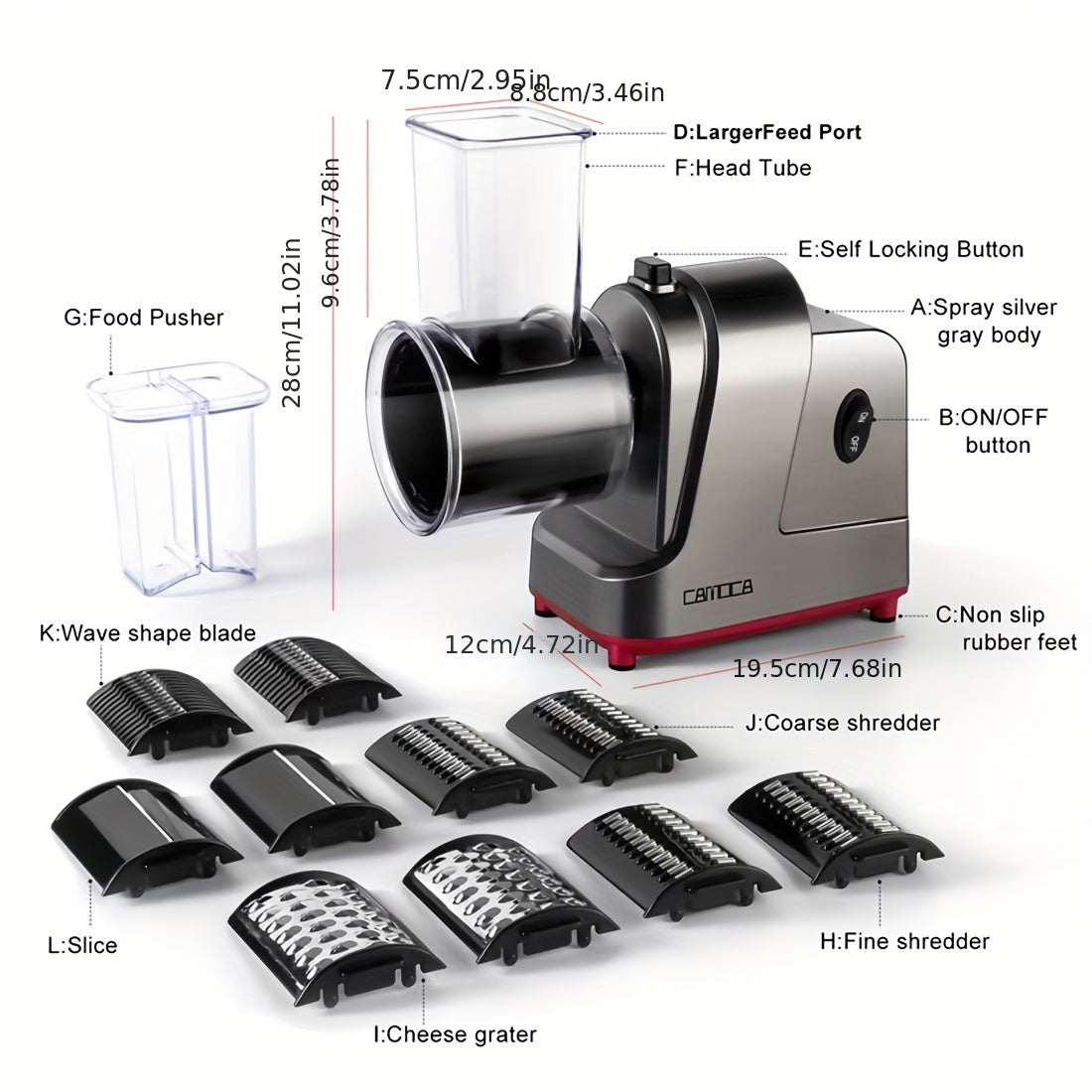 Bir dona metall oshxona sabzavot kesgichi, sabzavotlarni kesish uchun evropa standartidagi elektr oziq-ovqat protsessori. Ushbu oshxona asbobi har qanday oshpazlik ishqibozi uchun zarurdir.