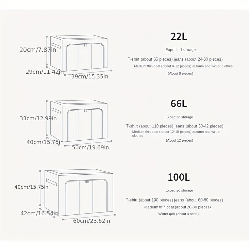 Koʻchiriladigan saqlash qutisi, shaffof poʻlat ramkali, shkafni tartibga solish uchun, katta sigʻimli kiyimlar saqlash