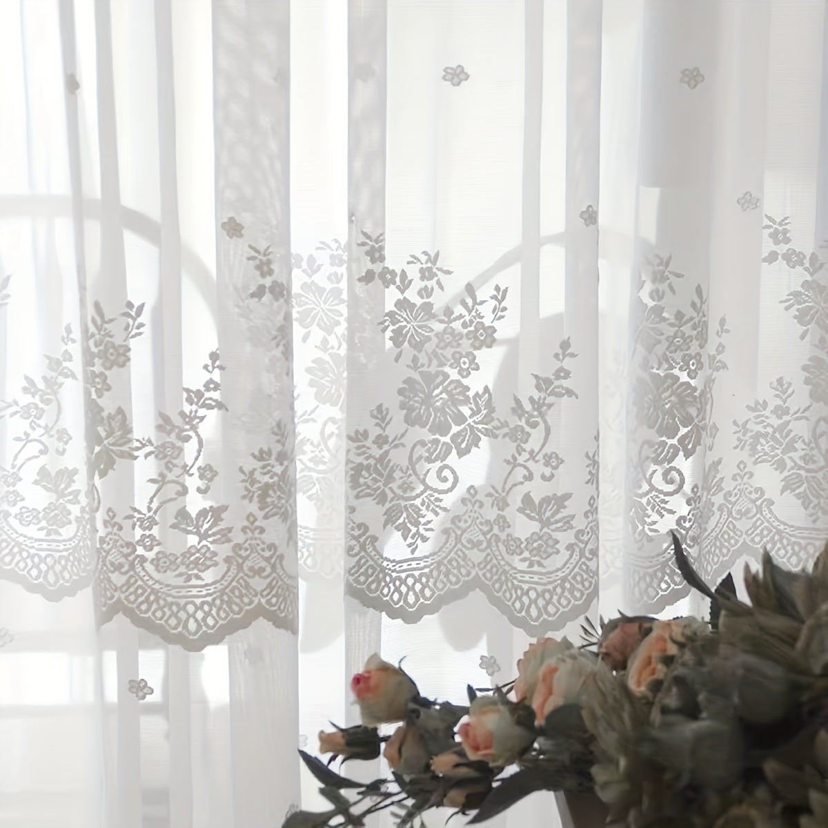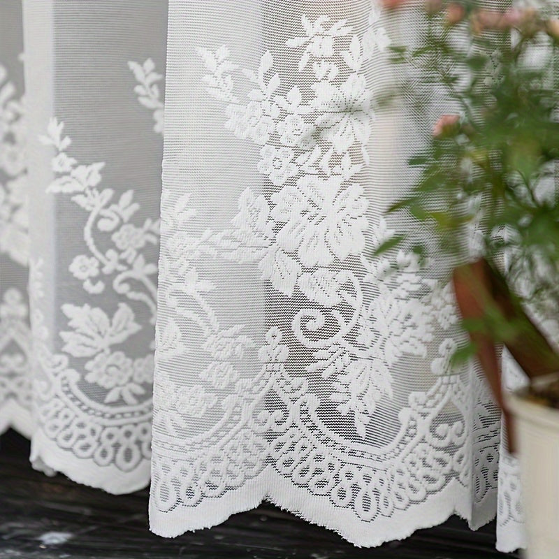 Bir dona Romantik Oq Dantel Pardasi, uzunligi sozlanadigan va mashinada yuvilishi mumkin. Nozik gullar naqshiga ega bo'lib, yotoqxonangiz, oshxonangiz yoki qahvaxonangiz dekoriga nafislik qo'shish uchun mukammal.