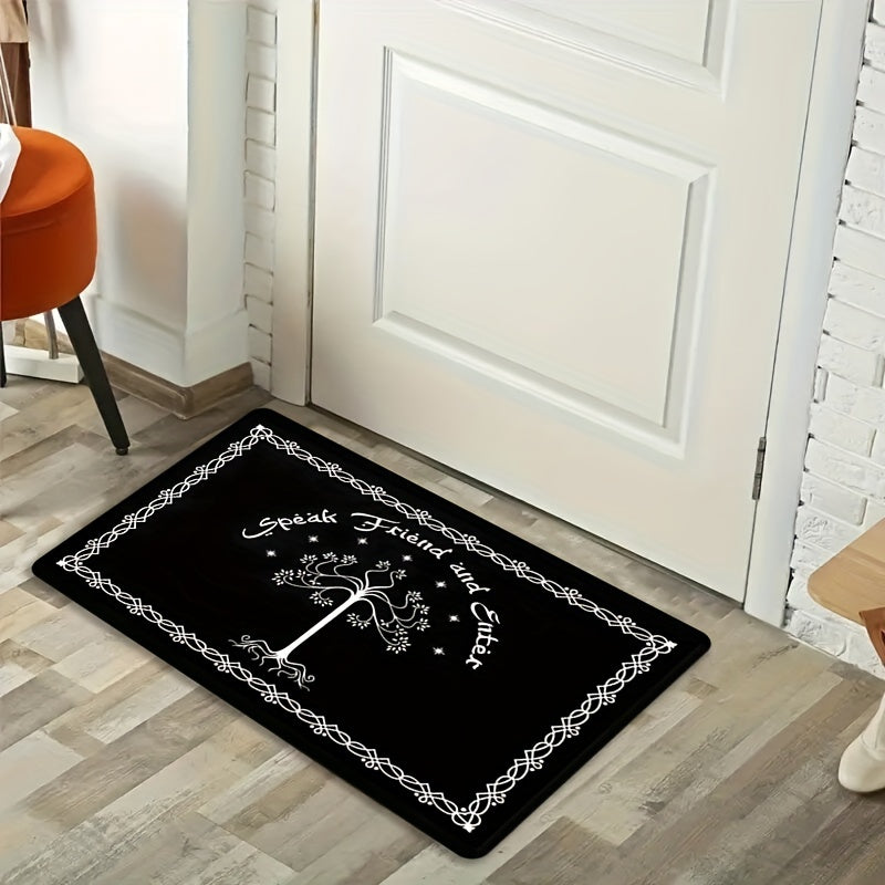 "One Piece" salom matosi "Do'st bilan gaplash va kir" dizayni bilan, ichki kirish joyi, hammom gilam bezaklari, old eshik, oshxona yoki balkon uchun mos, mashinada yuvish mumkin, sirpanmaydigan, polyesterdan tayyorlangan, to'rtburchak shaklida.