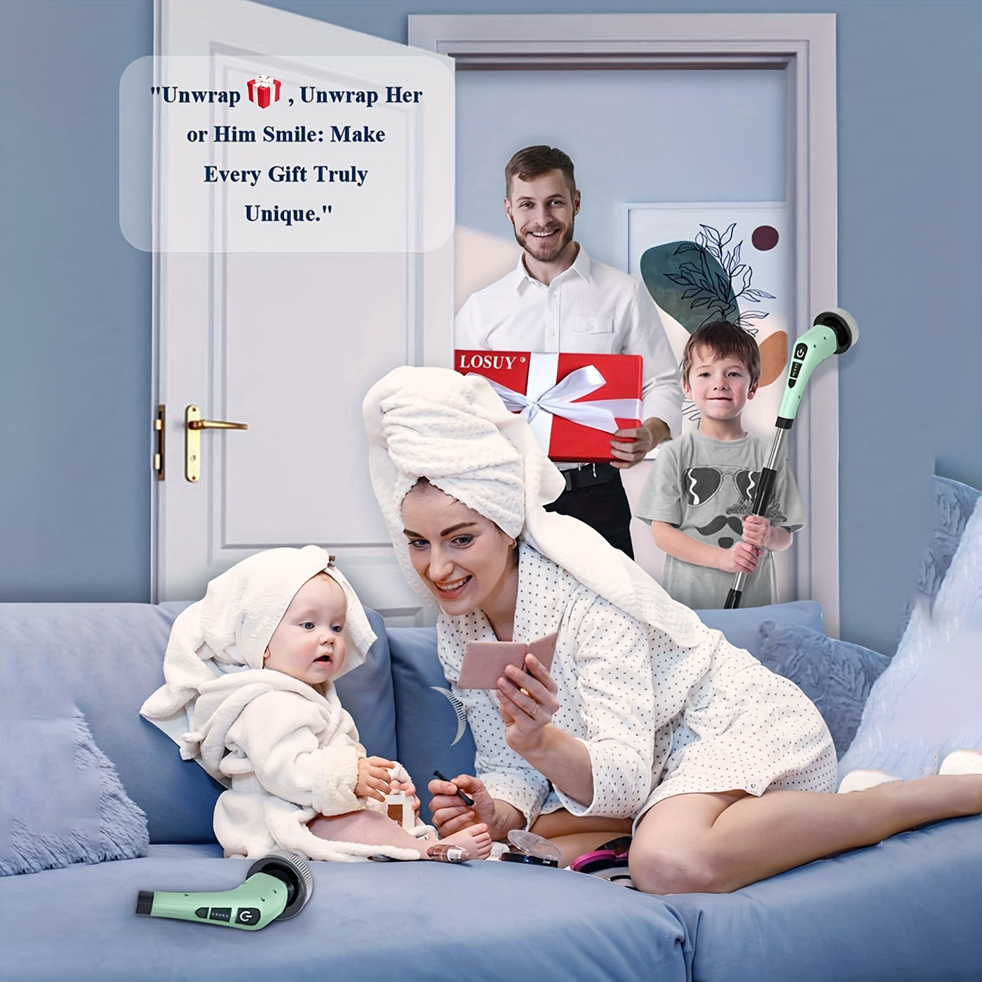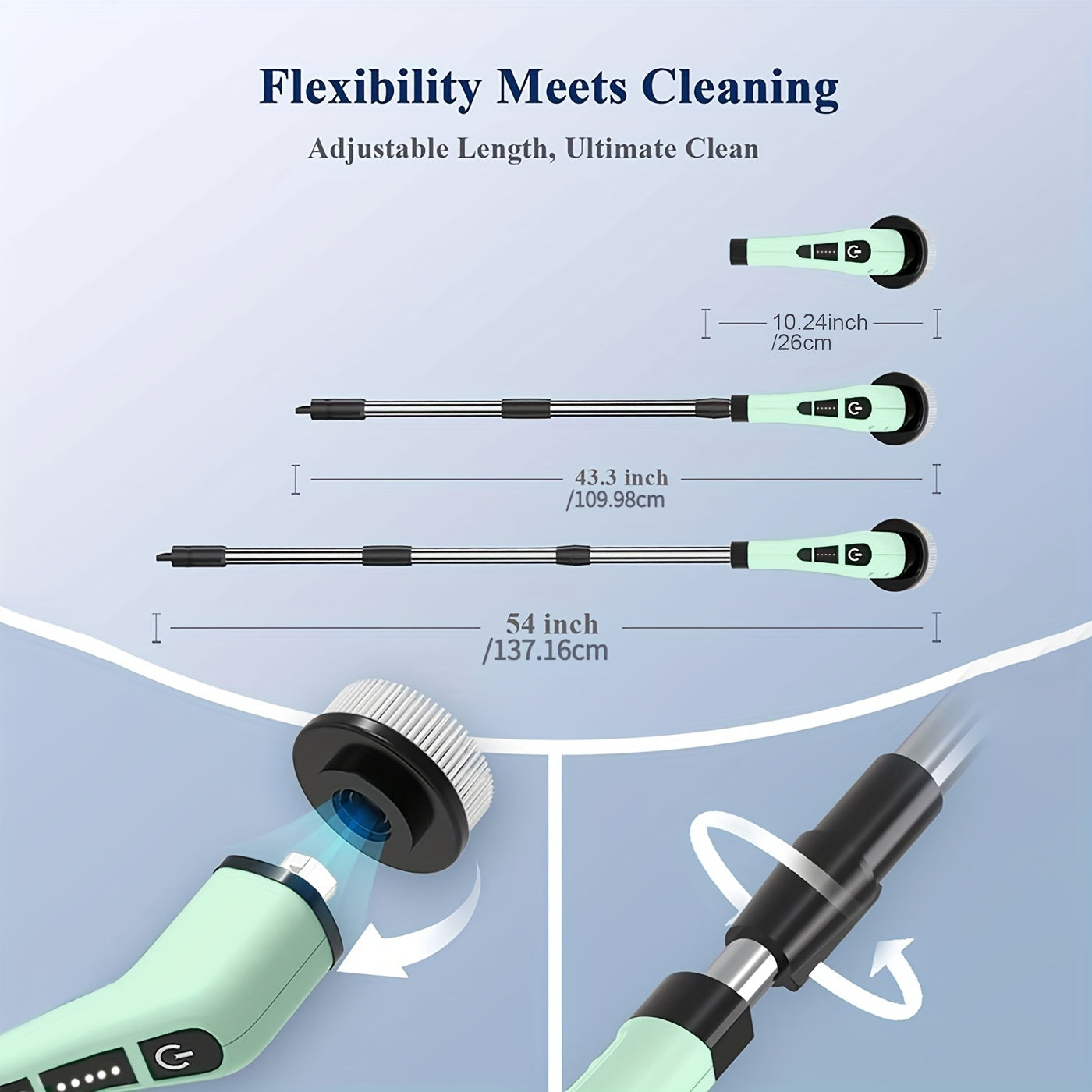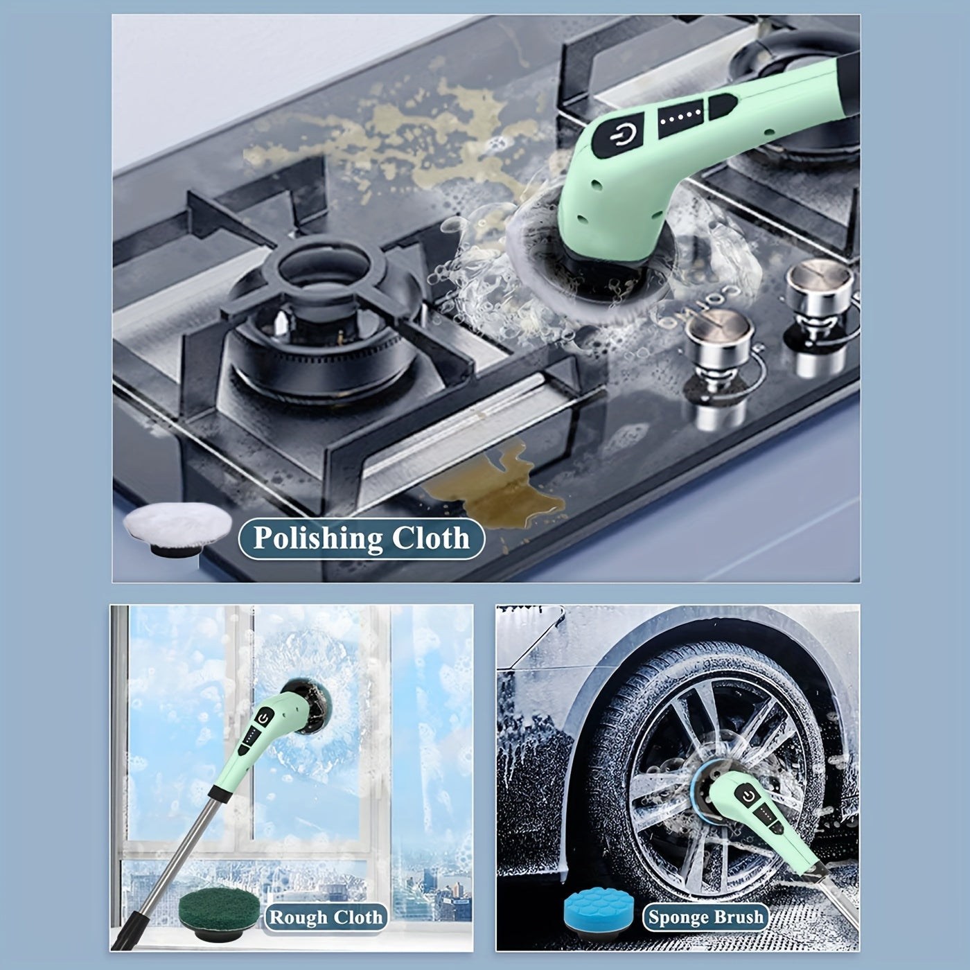 7 ta o‘rnini bosadigan cho‘g‘li elektr spin scrubber bir to‘plami. Uzunroq tutqich, 2 ta tezlik, buriladigan boshlar, lityum batareyasi bilan simsiz ishlash imkoniyatiga ega. Hammom, oshxona, vanna, plitka, dush, avtomobilni tozalash uchun ideal.
