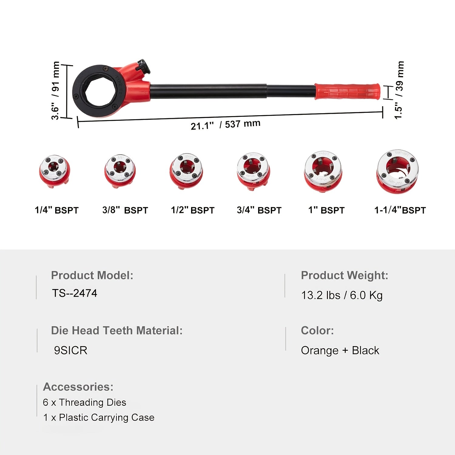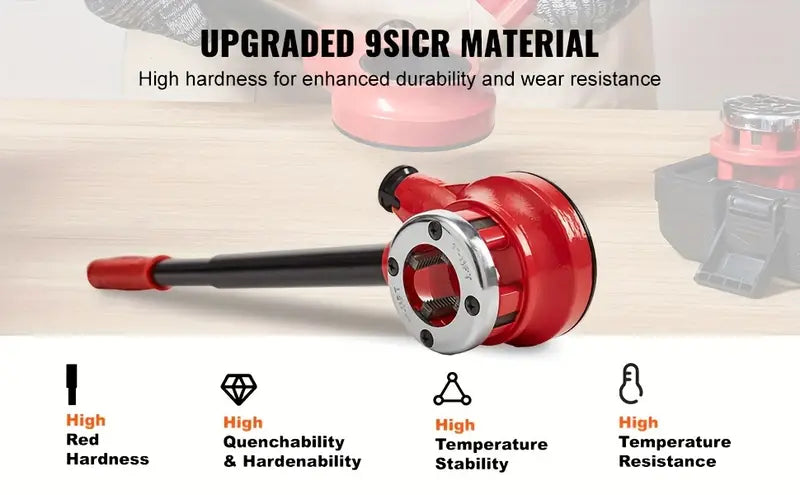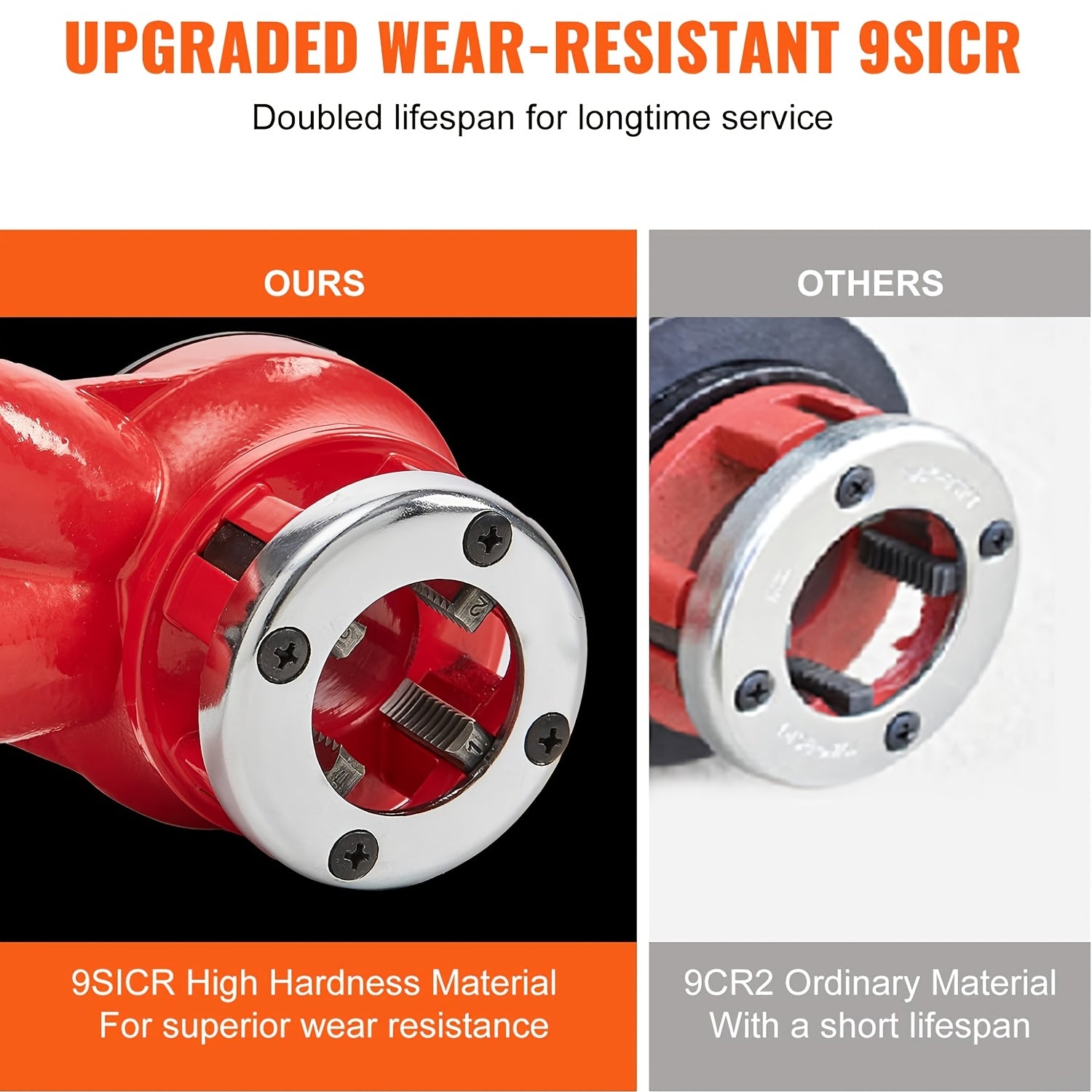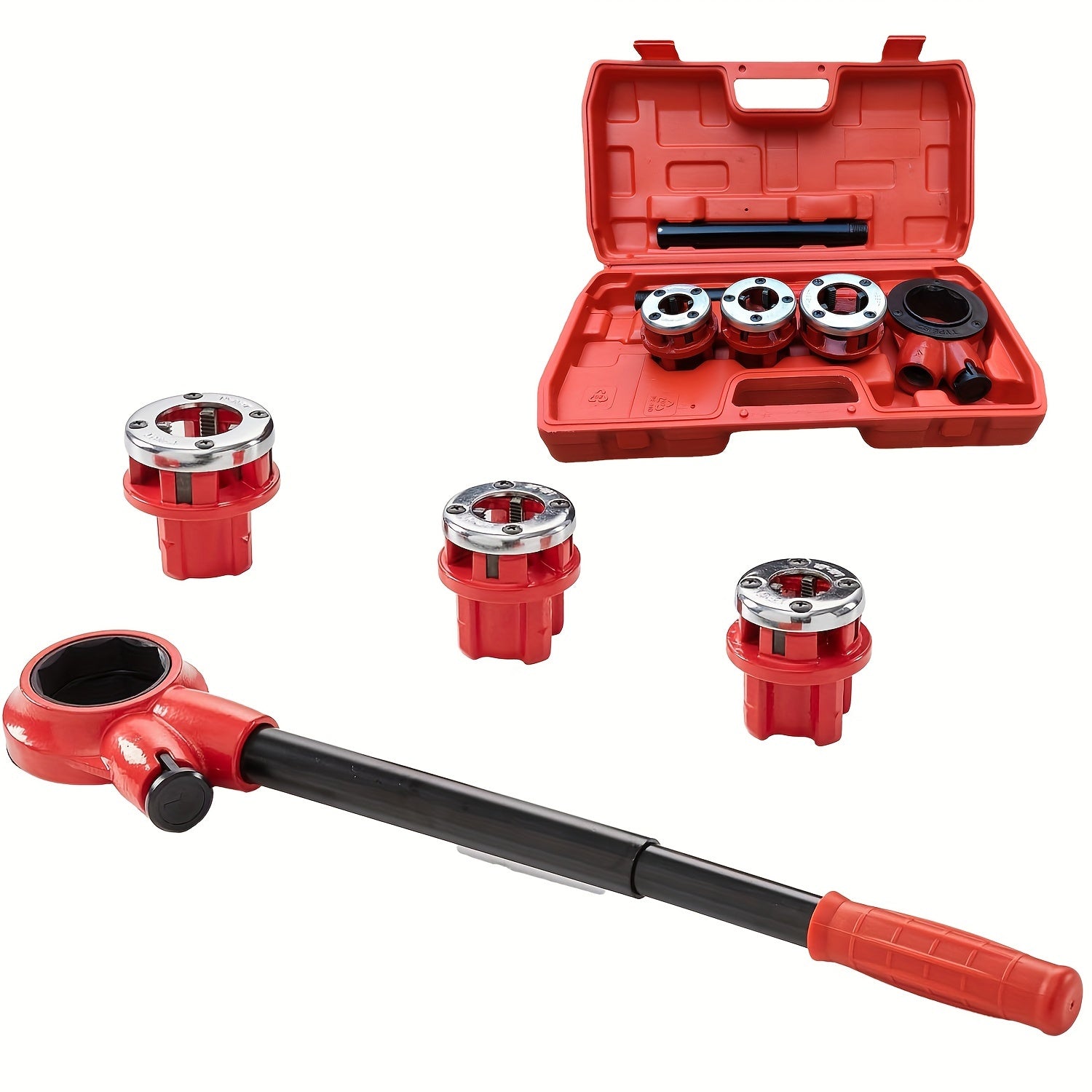 1/2", 3/4" va 1" NPT quvurlari uchun 3 ta die bilan saqlash qutisidagi Bir to'plam ratchet quvur ipini kesish to'plami [Qizil quti]