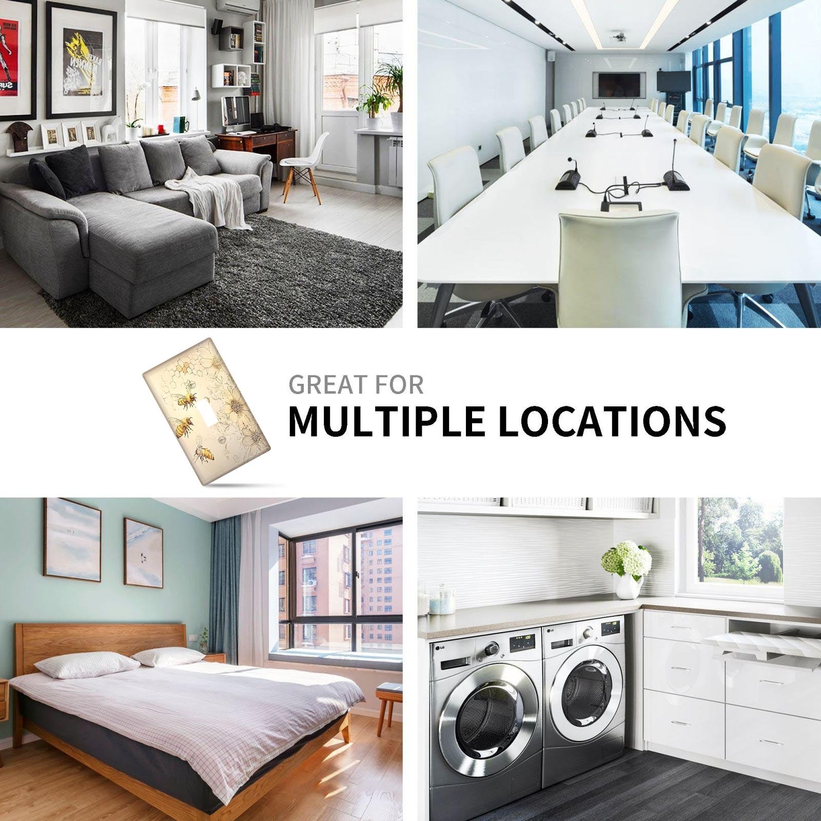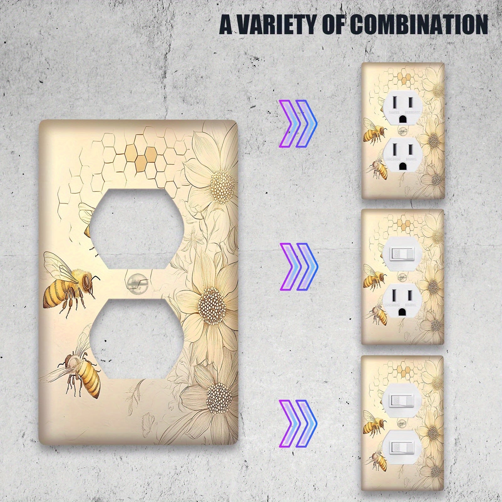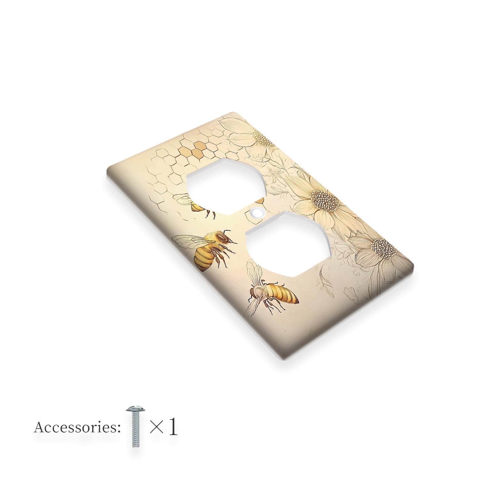 Bir quyosh gul va asalari bezakli devor plitkasi bitta o'zgaruvchi yoritish kalitlari va chiqish qopqog'i uchun, uy, ofis va mehmonxona dekoriga ilhom beruvchi dizayn. Elektr chiqishlari va oshxona uchun 1 yoki 2 guruh konfiguratsiyalarida mavjud.
