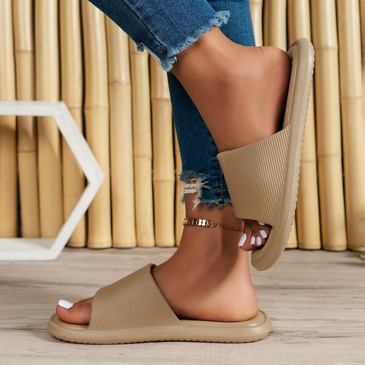 Erkaklar va ayollar uchun ochiq barmoqli slaydlar yumshoq EVA, sirg‘almasin, ichki va tashqi foydalanish uchun sandalь