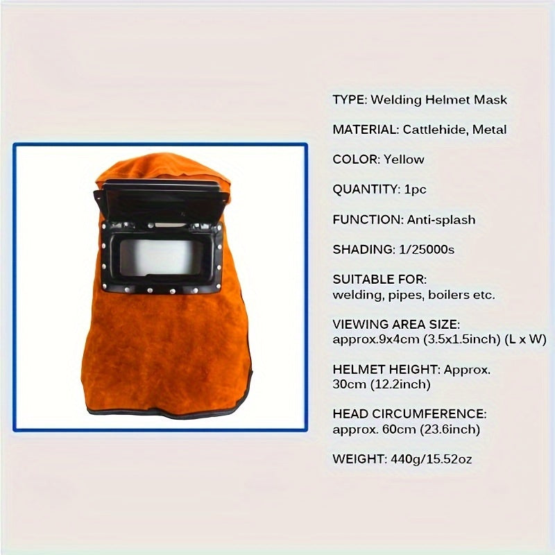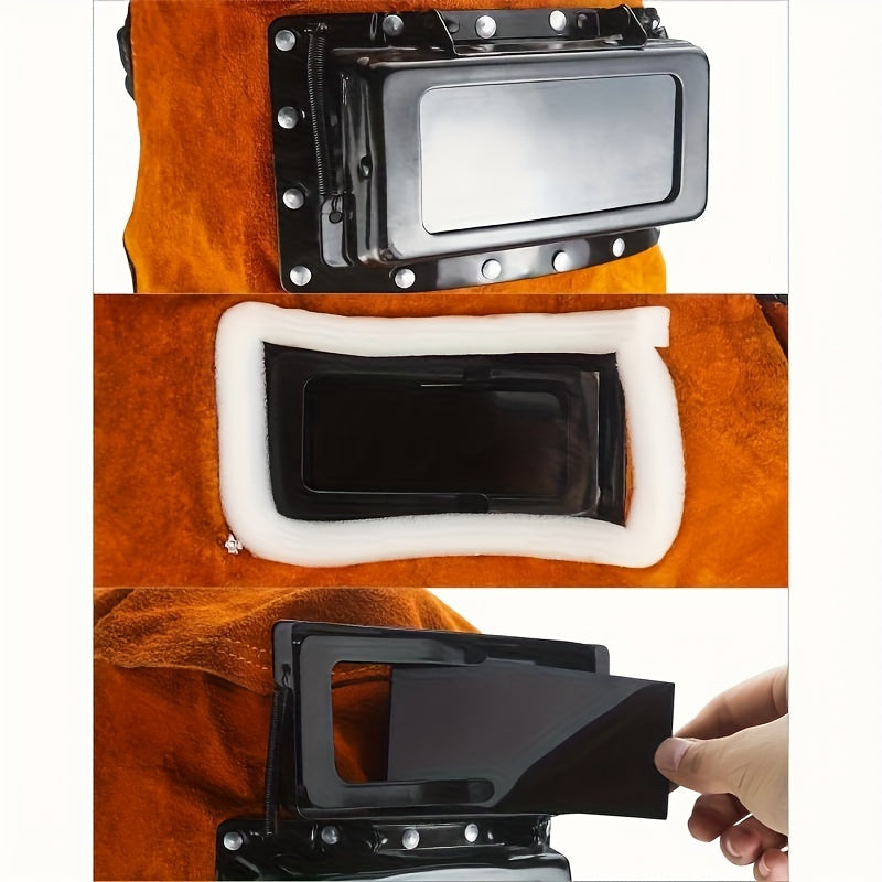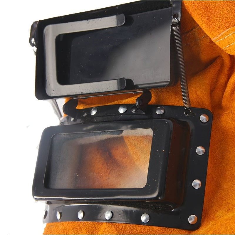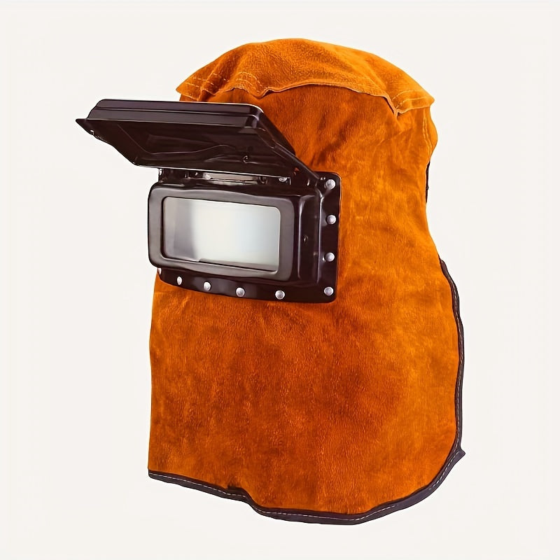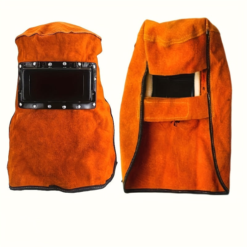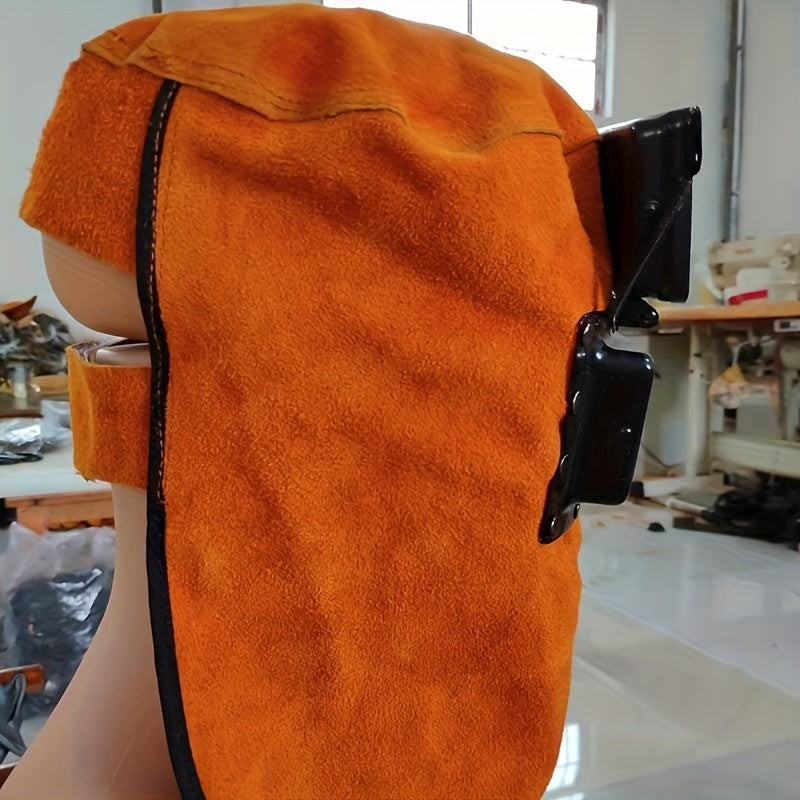 Sanoat foydalanishi uchun avtomatik qoraytiriladigan filtr linzasi, sun'iy charm kapyushon va shaffof ko'rish oynasi bilan apelsin rangli payvandlash shlemi.