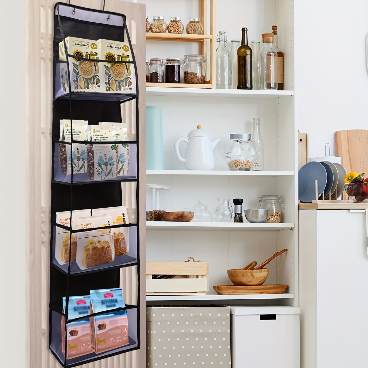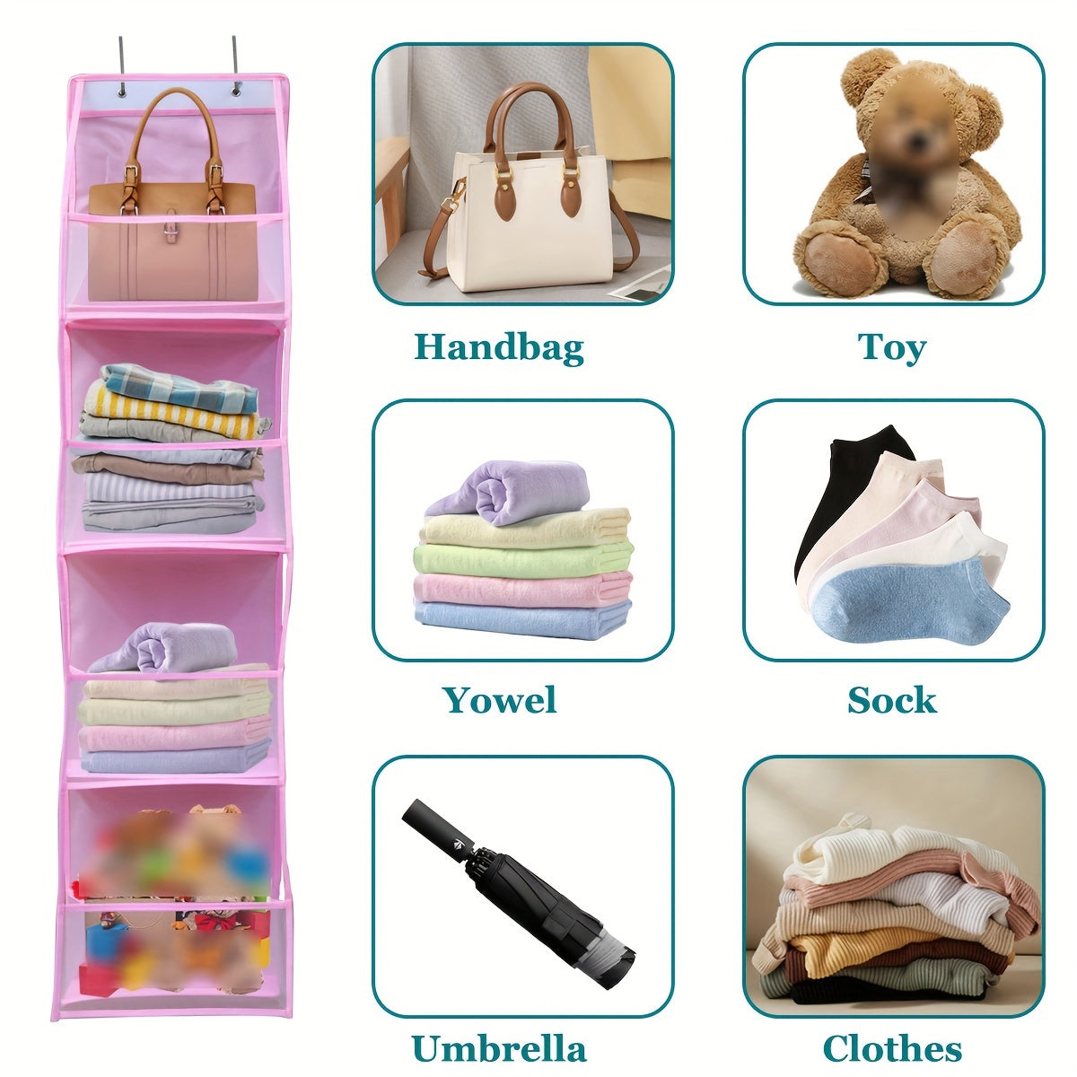 Rangli Over-the-Door osilib turadigan tashkilotchi, 4 ta cho'ntak bilan, shkaf, hammom, yotoqxona uchun saqlash