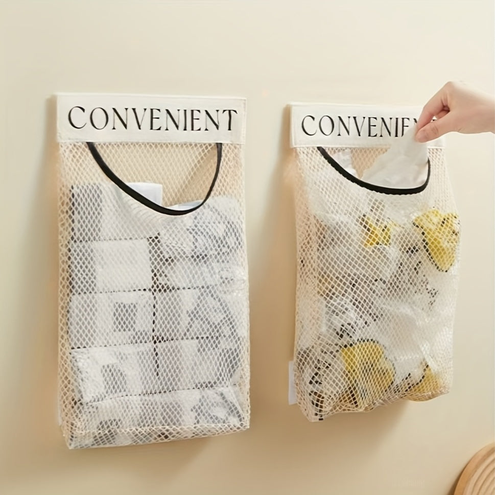 Devorga o'rnatilgan plastik sumka tashkilotchisi, qayta ishlatiladigan elastik tarmoq oshxona saqlash