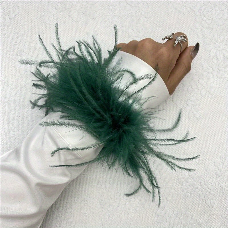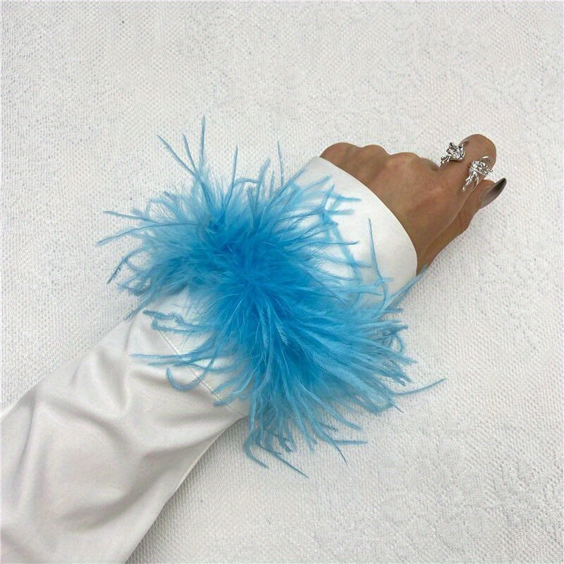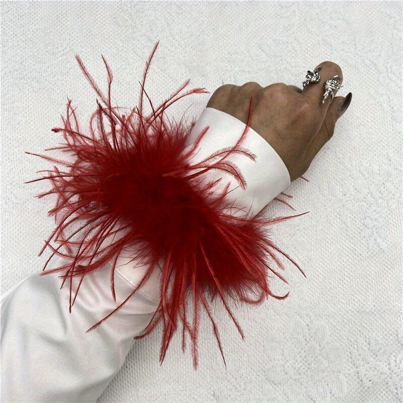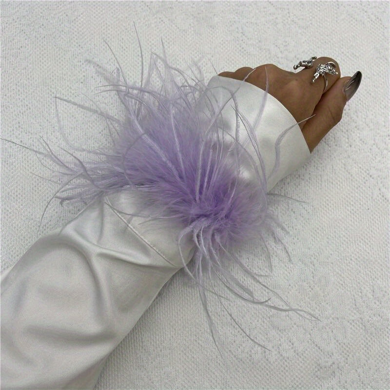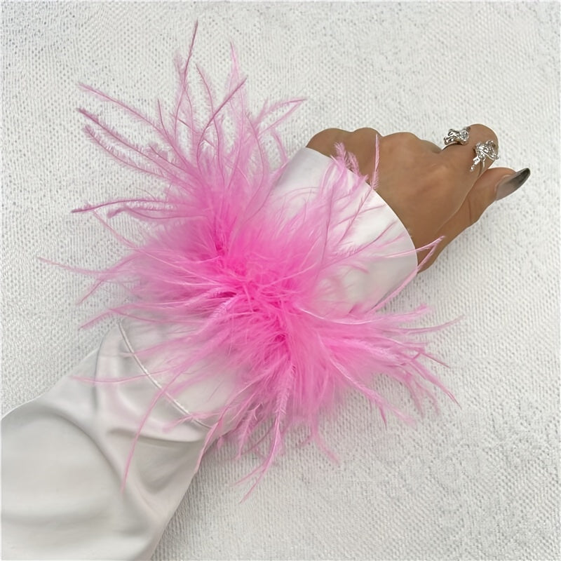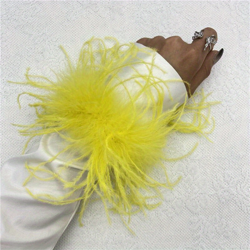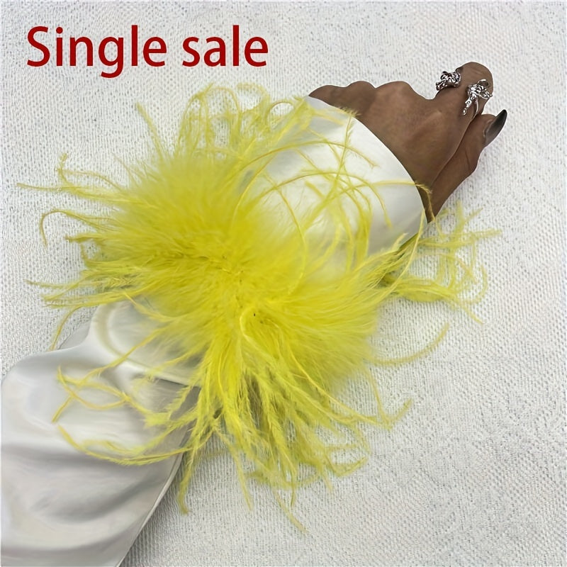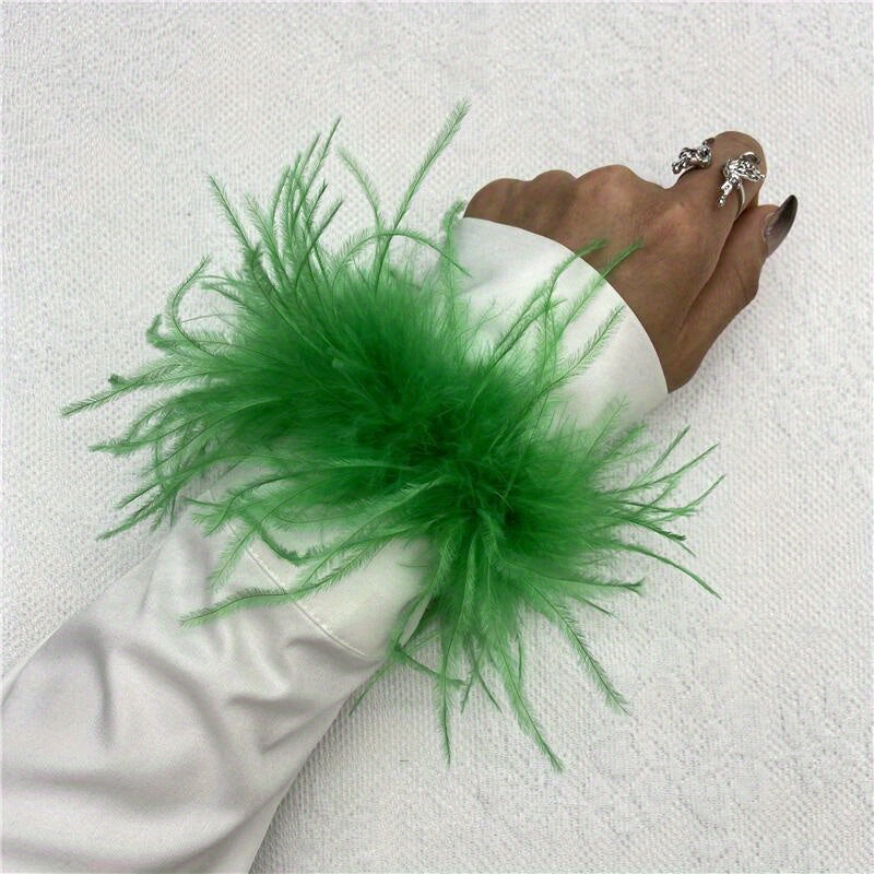 "Ostrich tovuq patidan yasalgan bilak qopqog'i 20 rangda mavjud, mustahkam rangli karnaval urish bilakuzuklari, Halloween cosplay, partiya aksessuarlari uchun mukammal, elastik bo'lmagan tovuq patidan yasalgan bilakuzuk"