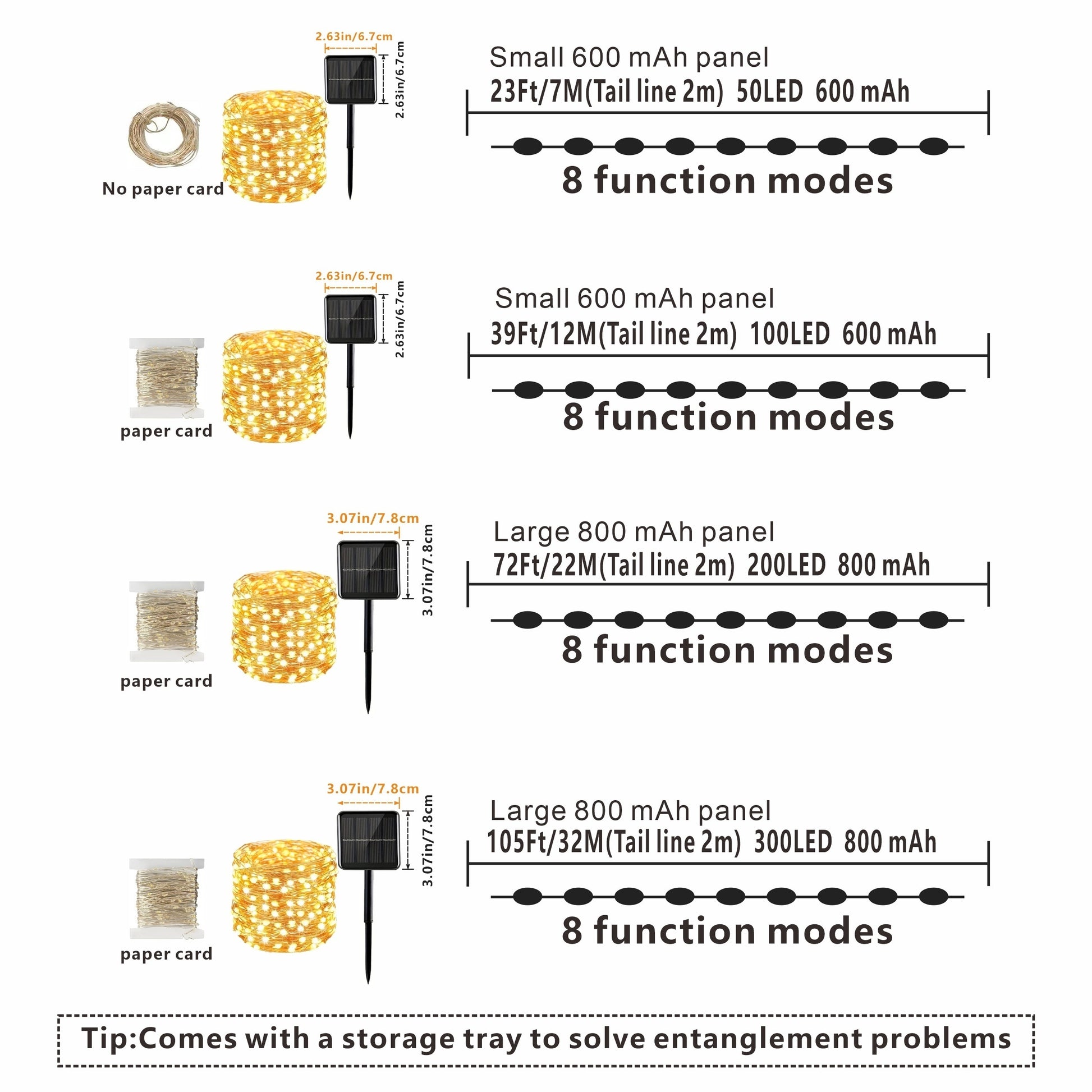 Tashqi quyoshli ip chiroqlari, 8 rejimda, daraxt, bog', Rojdestvo, partiya, to'y uchun, avtomatik yoqish/o'chirish funksiyasi, iliq oq, rangli yoki oq rangda mavjud.