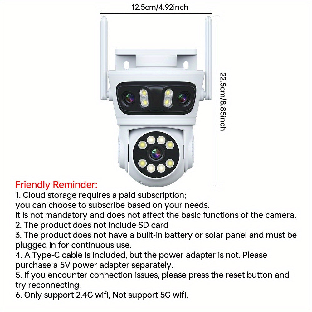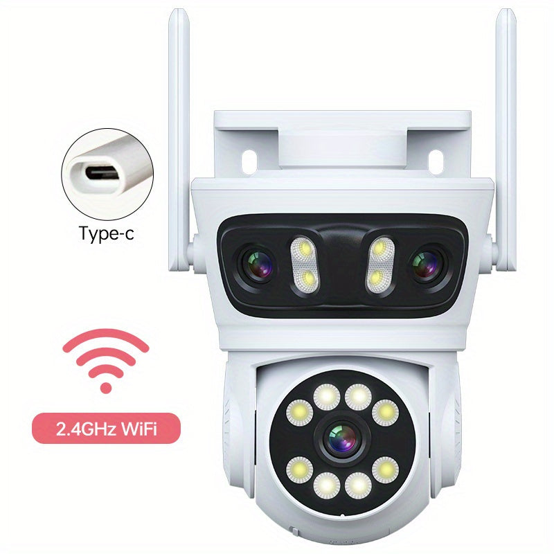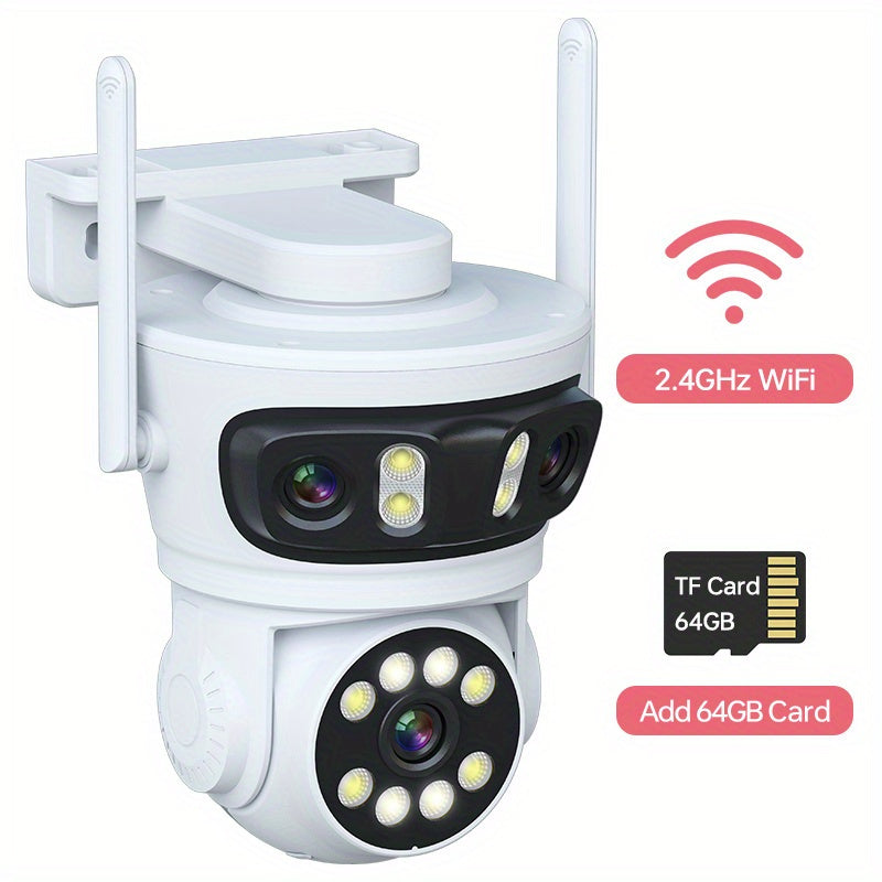 Tashqi uchta linzali xavfsizlik kamerasi, 360 daraja ko'rish, insonni aniqlash, avtomatik kuzatish, rangli tungi ko'rish, ikki tomonlama suhbat va signal yuborish xabarnomalari bilan. Yoshlar va qariyalarning kuzatilishi uchun ideal.