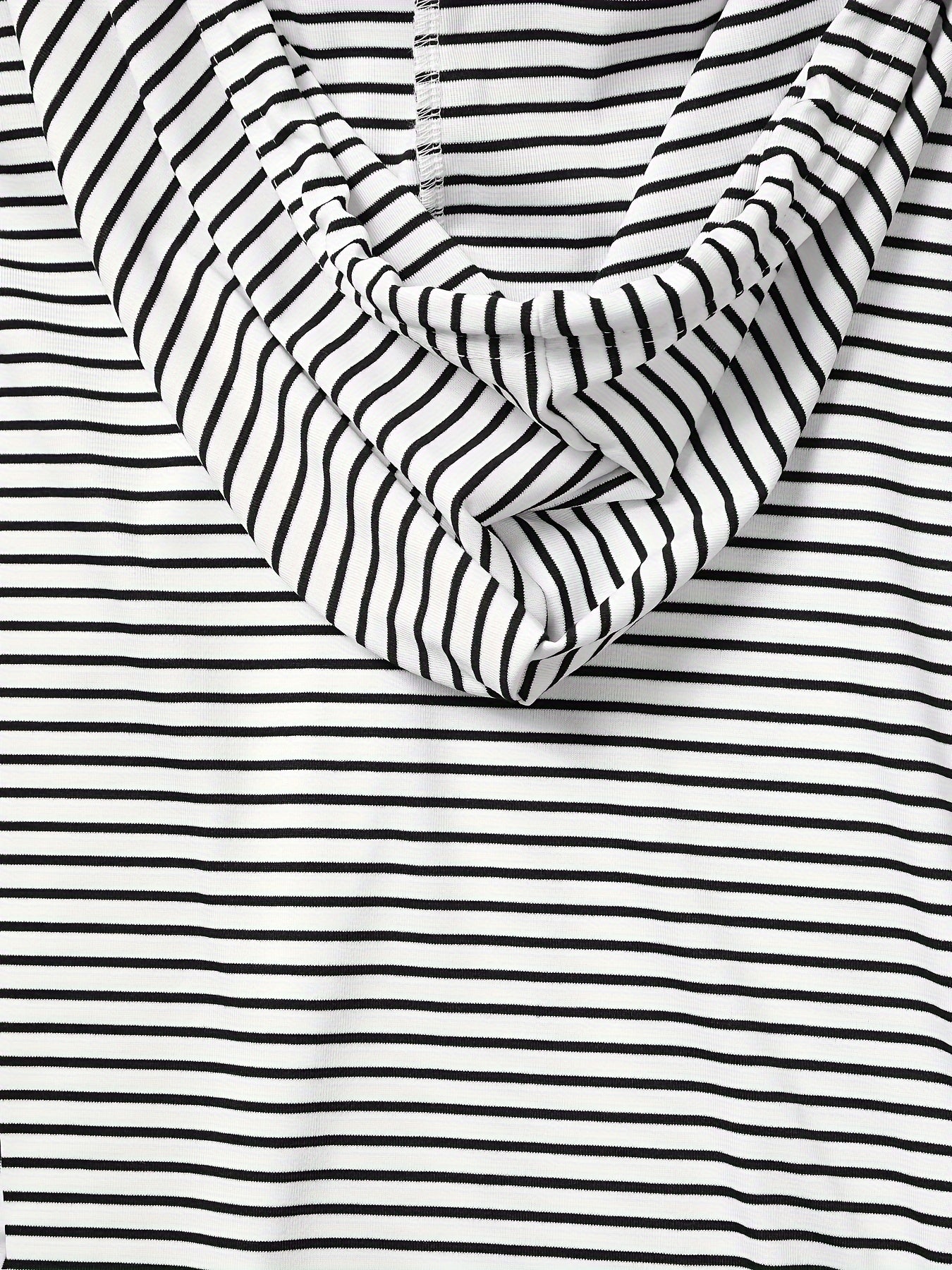 Katta o'lchamdagi chiziqli kapüşon, tortish ipi va mashinada yuvish mumkin bo'lgan polyester aralashmasi, bahor/kovakda tasodifiy va qulay ko'rinish uchun mukammal.
