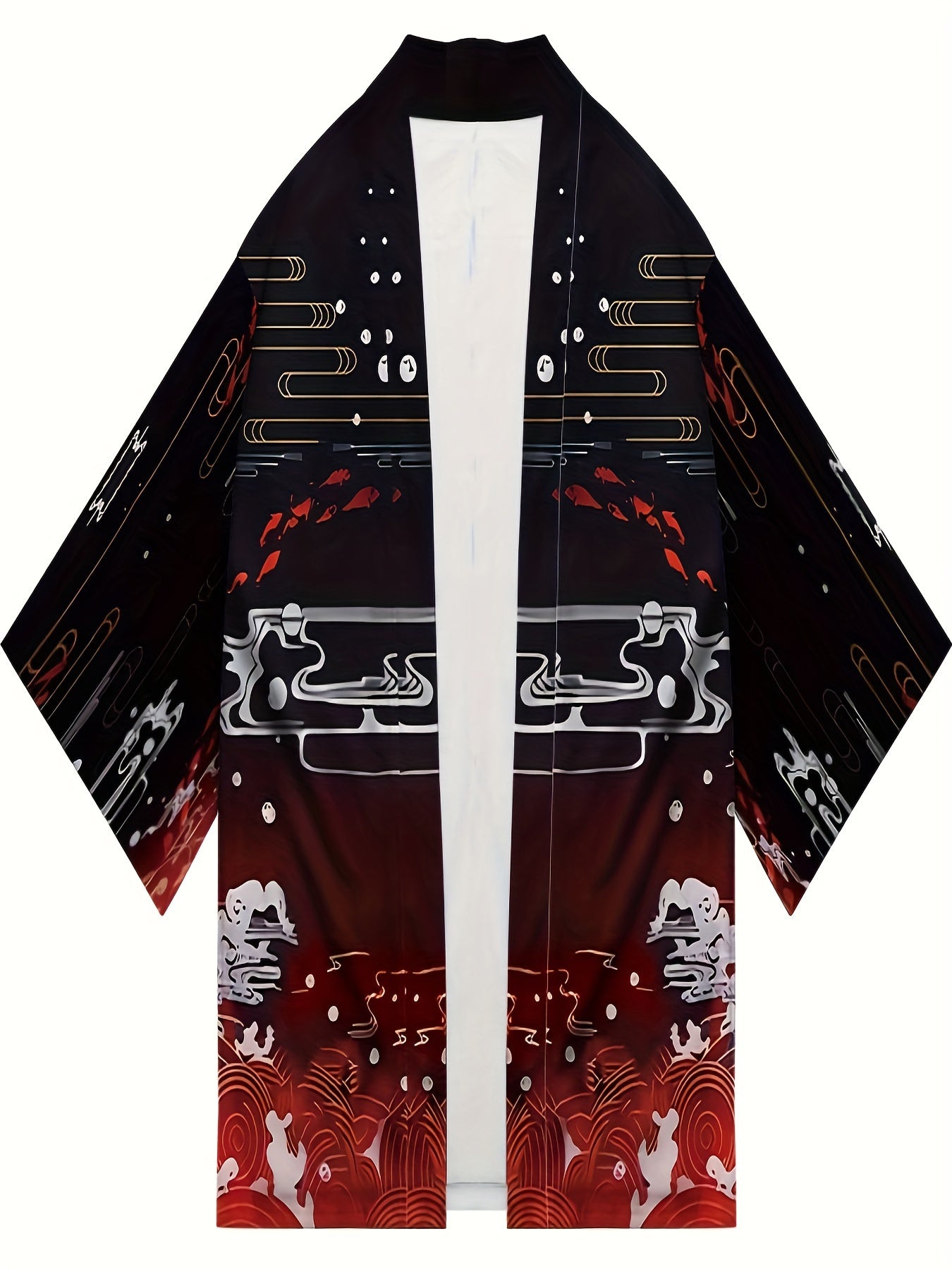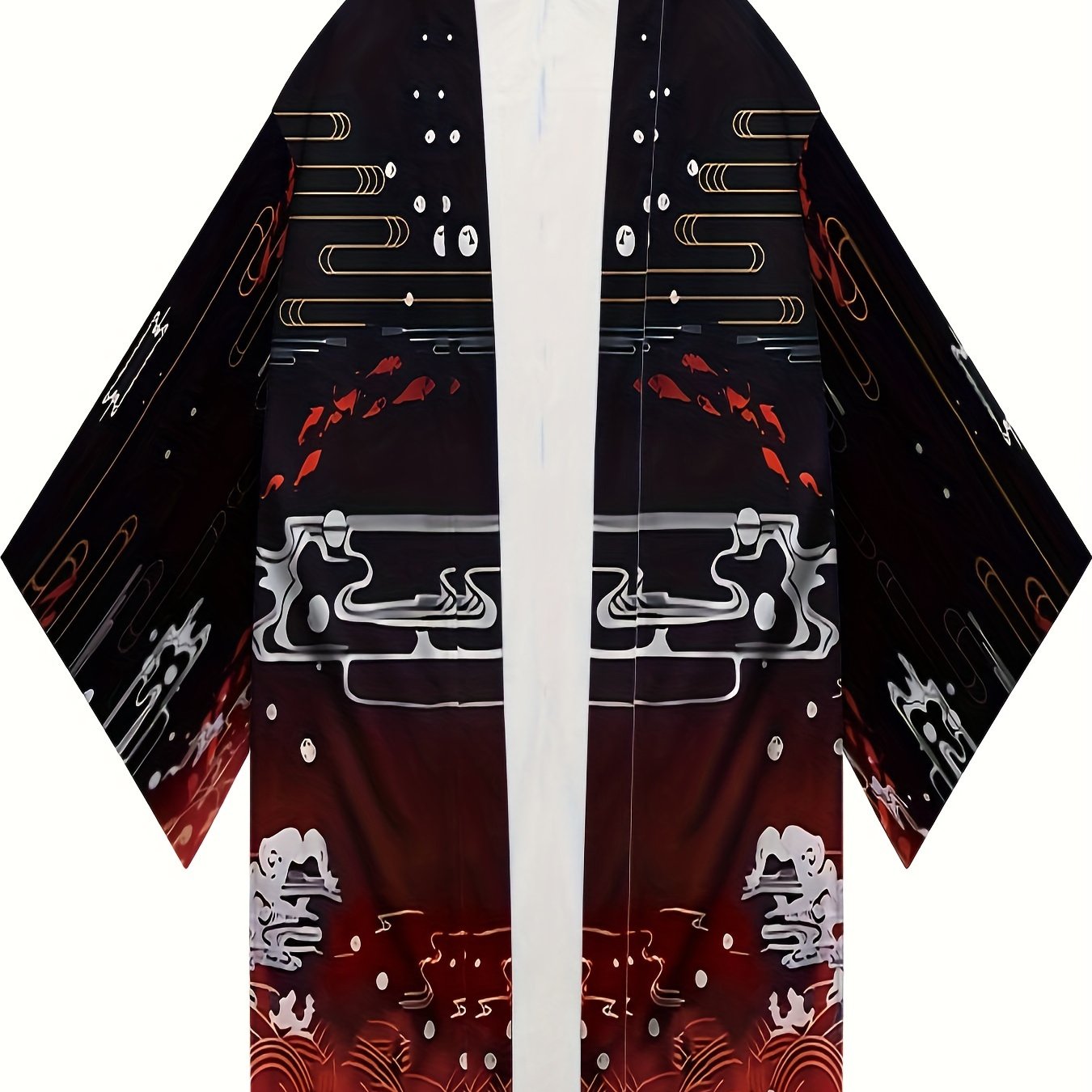 Katta o'lchamdagi erkaklar uchun etnik uslubdagi gullar printi bilan keng fitli kardigan kimono.