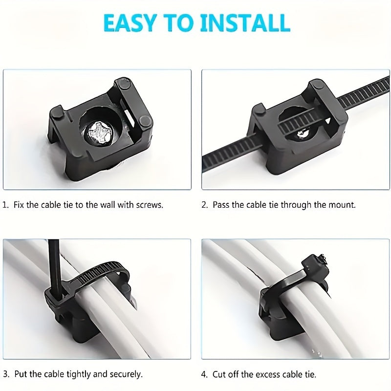 Ofis, uy, bog' uchun 100 ta qora zip-tie asosli otlar, kabellarni mahkamlagichlar