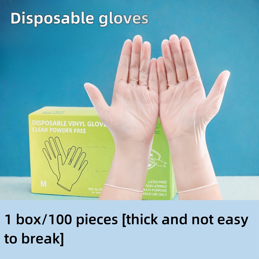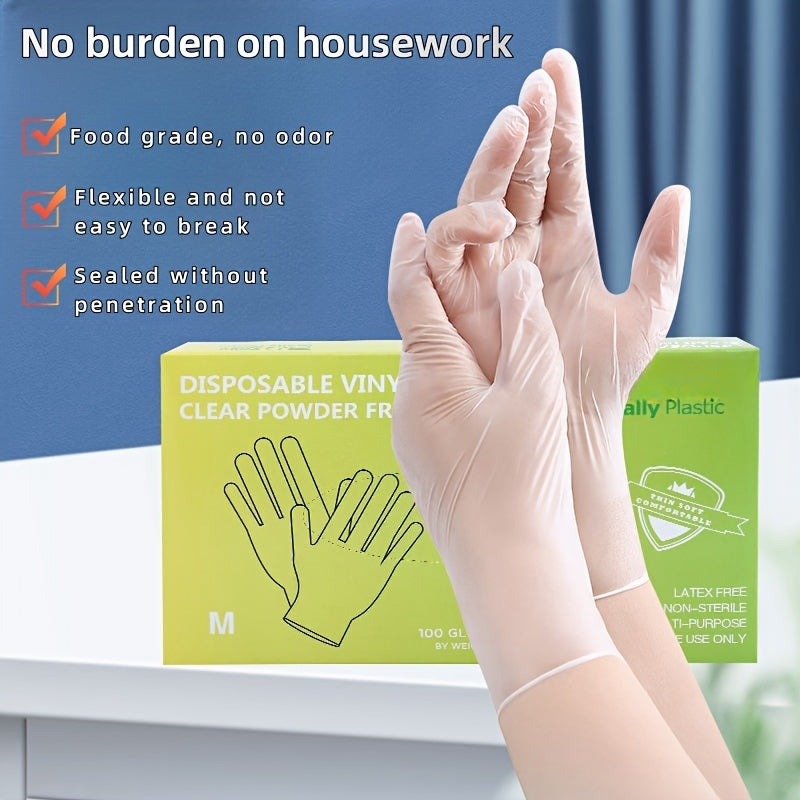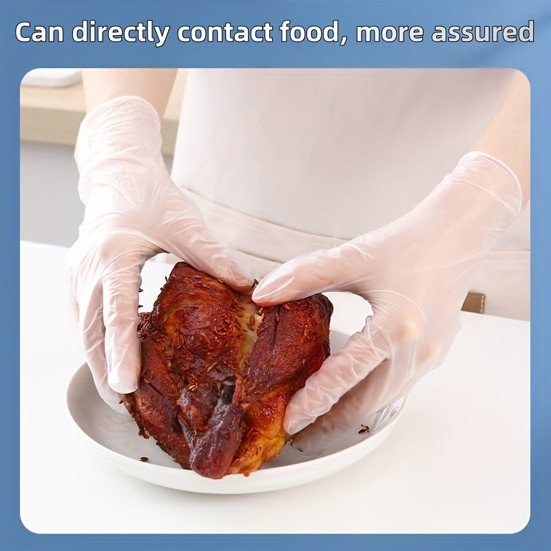 100 dona PVC bir martalik qo‘lqoplar, suv o'tkazmaydigan, moslashuvchan, oziq-ovqatni tozalash va salon foydalanishi uchun