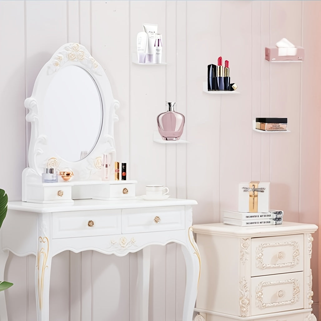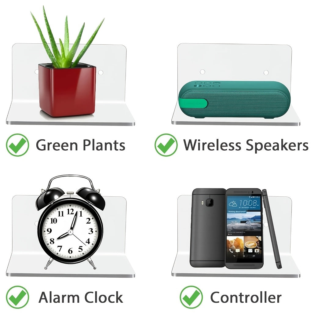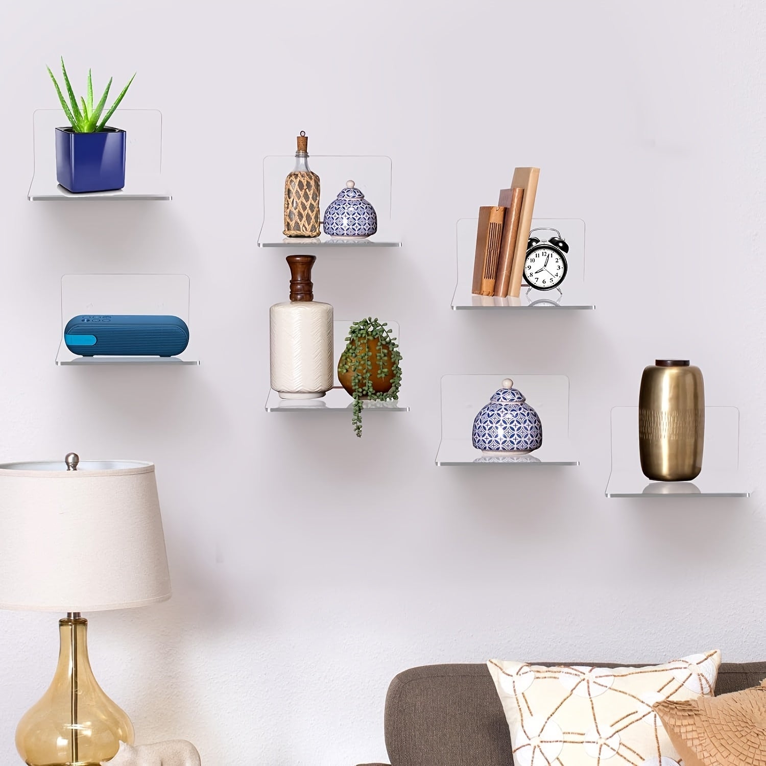3 ta kichik akril suzuvchi javonlar to'plami, devorga osish uchun ideal, o'simliklar va o'yinchoqlar, rasm ko'rsatish uchun yopishtiruvchi bilan yotoqxona bezak javoni