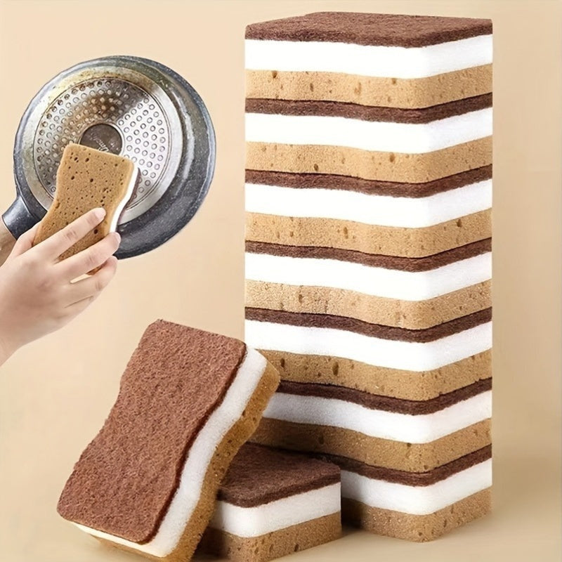 5, 10 yoki 20 ta qopqoqsiz tozalash gubkalari, 3 qatlamli. Ikki tomonlama tozalash padlari va yuqori singdirish qobiliyatiga ega. Oshxona, idish yuvish, uy va maktab tozalash ehtiyojlari uchun ideal.