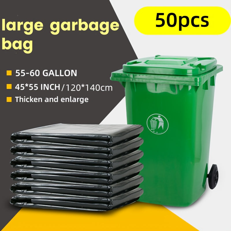 50 ta og'ir yuk ko'taruvchi qora axlat qoplari, sig'imi 208.2-227.12 L - Tashqi, sanoat, hovli, oshxona va boshqa joylar uchun kuchli va ishonchli - Ko'p maqsadli bir martalik chiqindilar qoplari