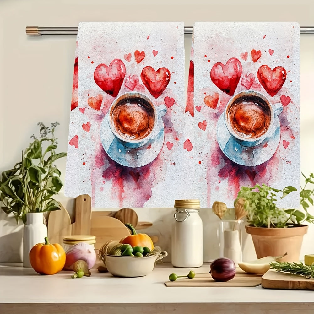 2 ta Super Soft Oshxona Sochiqlari jufti, Sevishganlar kuni yoki Anti-Sevishganlar kuni uchun ideal, Kofe sevuvchilar uchun yaratilgan. Bu Absorbent Tovoq sochiqlari bayram bezash uchun mukammal, mashinada oson yuviladi va o'lchami 40.64x60.96 sm.