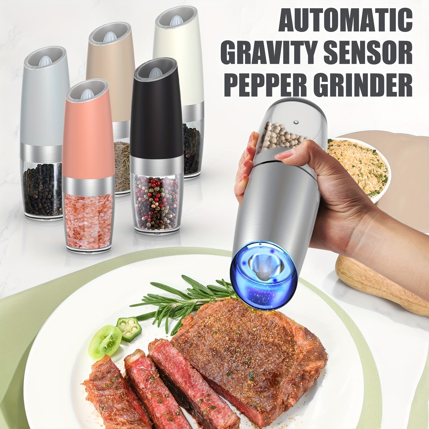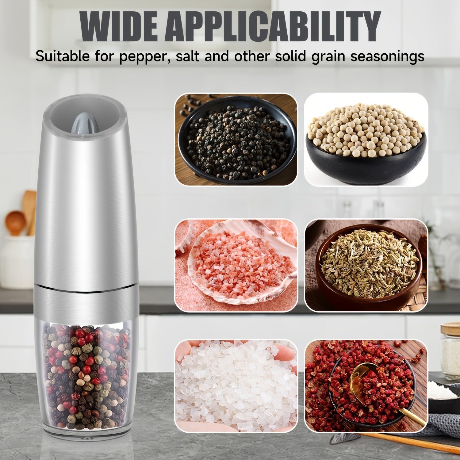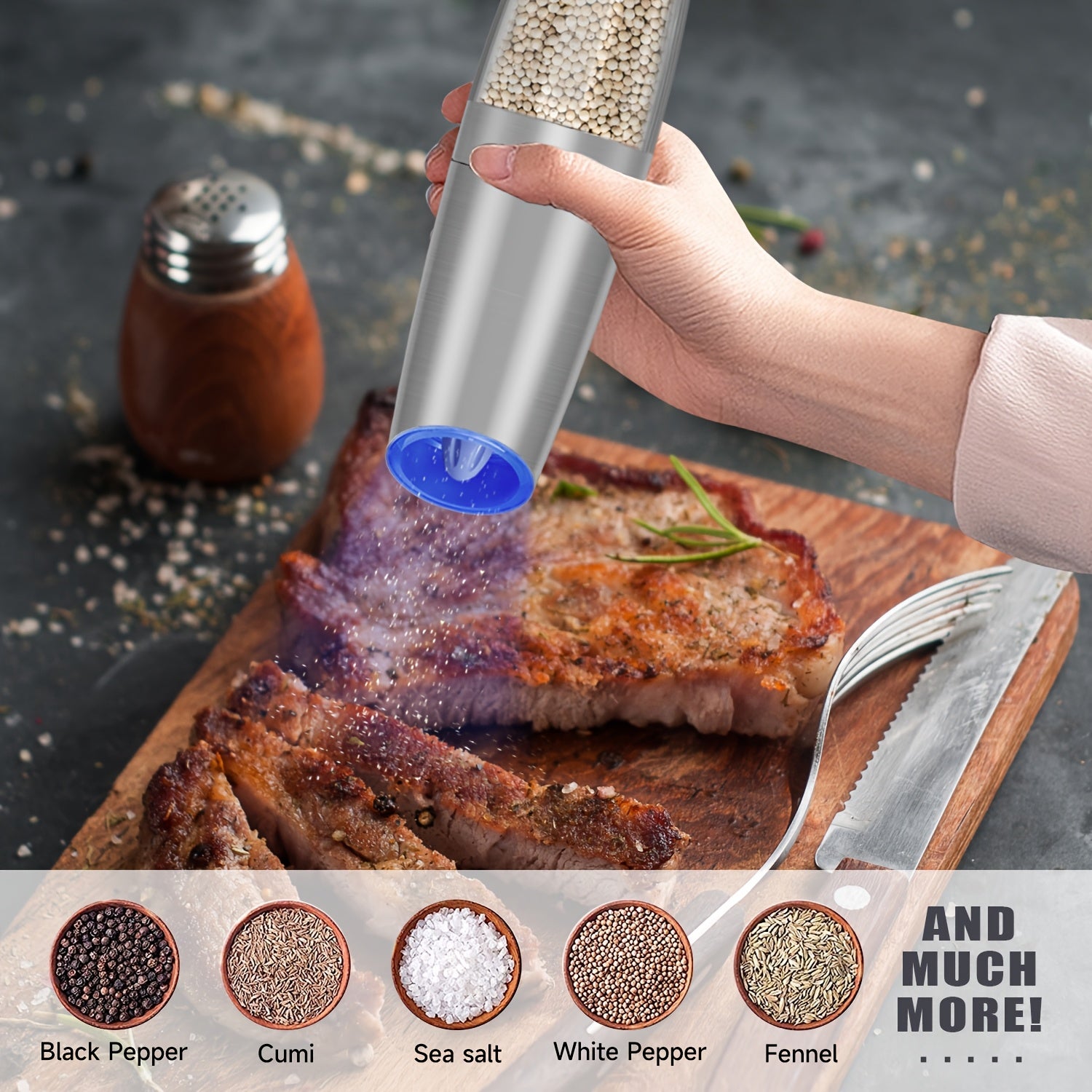 Elektr pechene va tuz maydalagich to'plami, sozlanadigan qattiq, zanglamaydigan po'latdan, batareyali