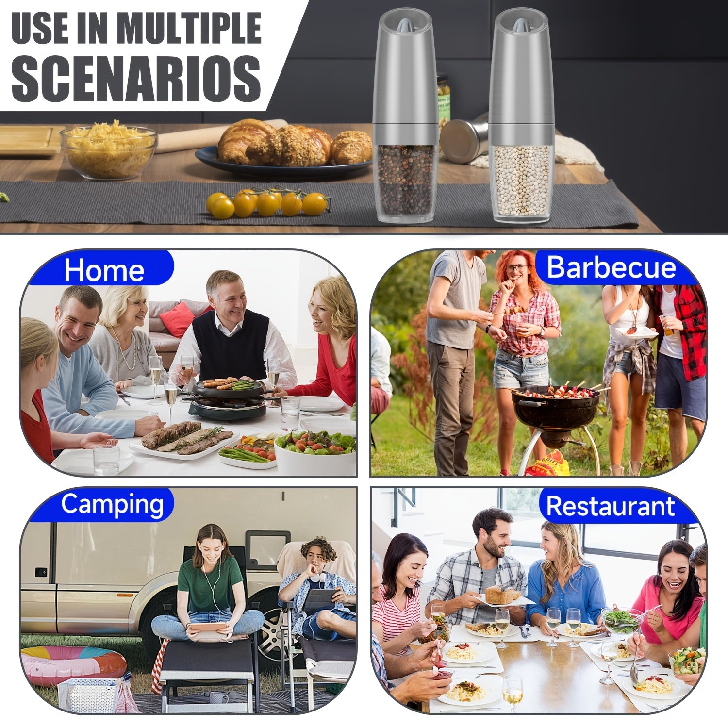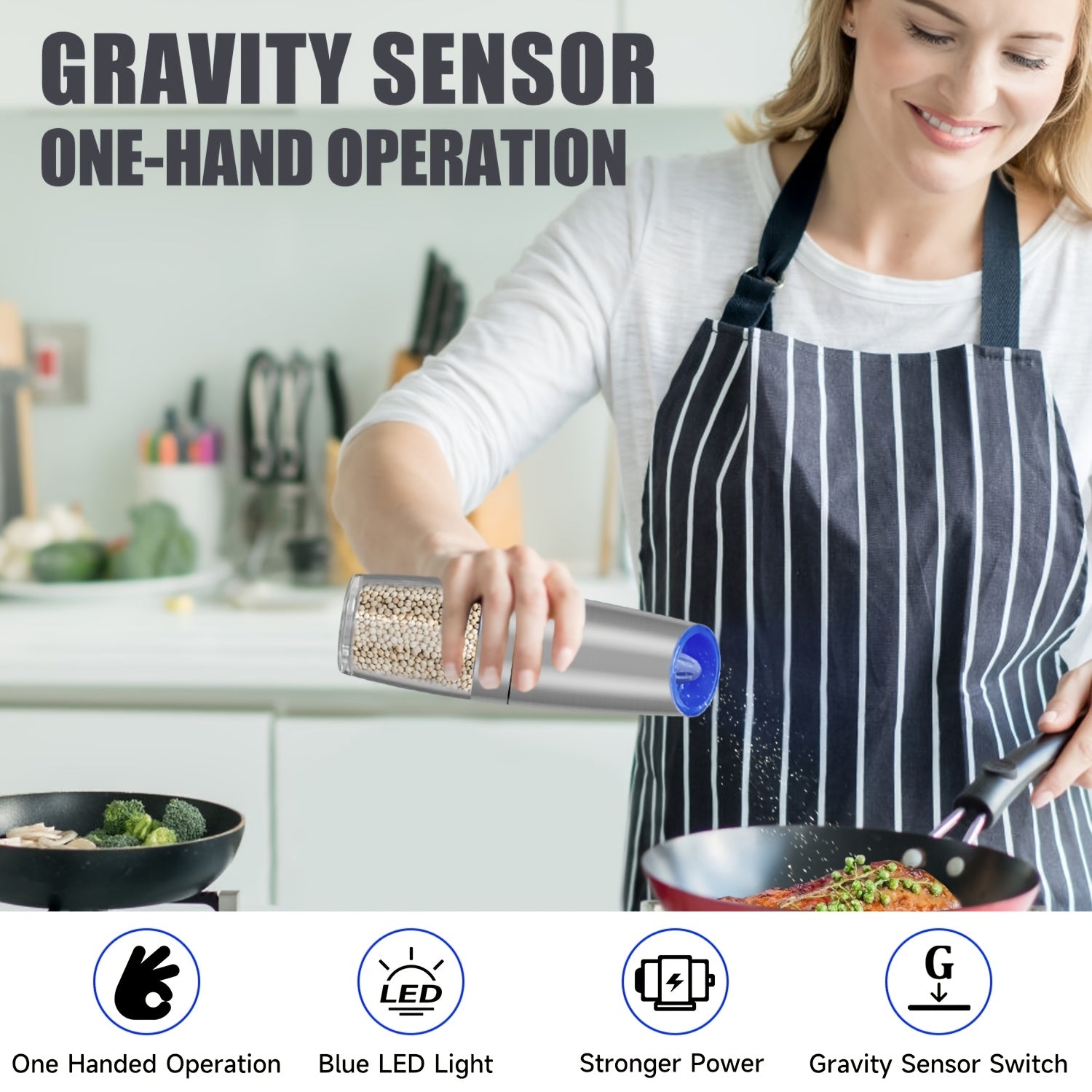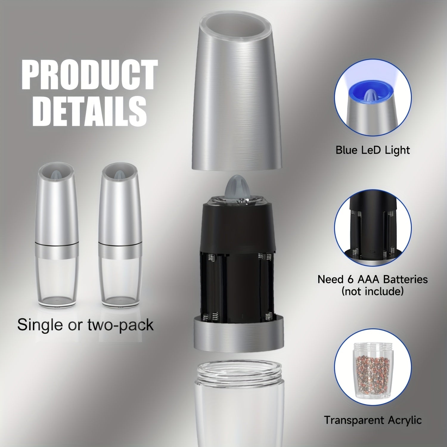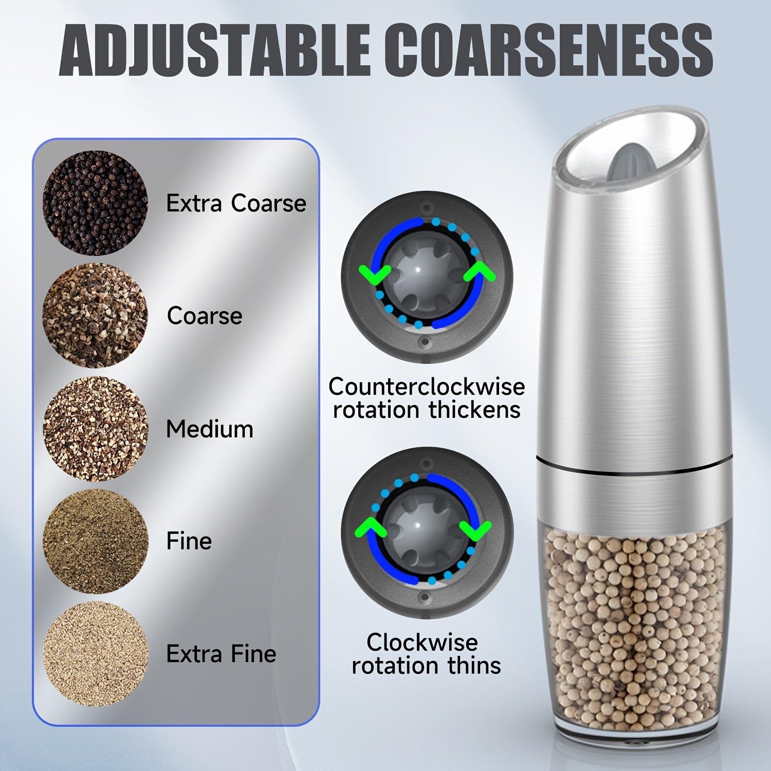 Elektr pechene va tuz maydalagich to'plami, sozlanadigan qattiq, zanglamaydigan po'latdan, batareyali