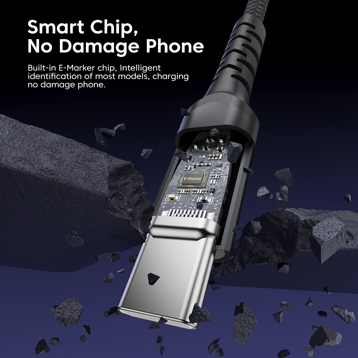 PD100W Max Type C dan Type C kabeli Samsung, Honor, Xiaomi va iPhone 15/15Plus/15Pro/15 Pro Max, 16/16Plus/16 Pro/16Pro Max uchun tez zaryadlash.
