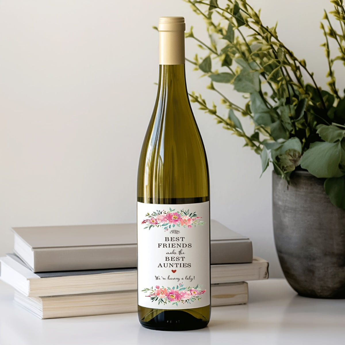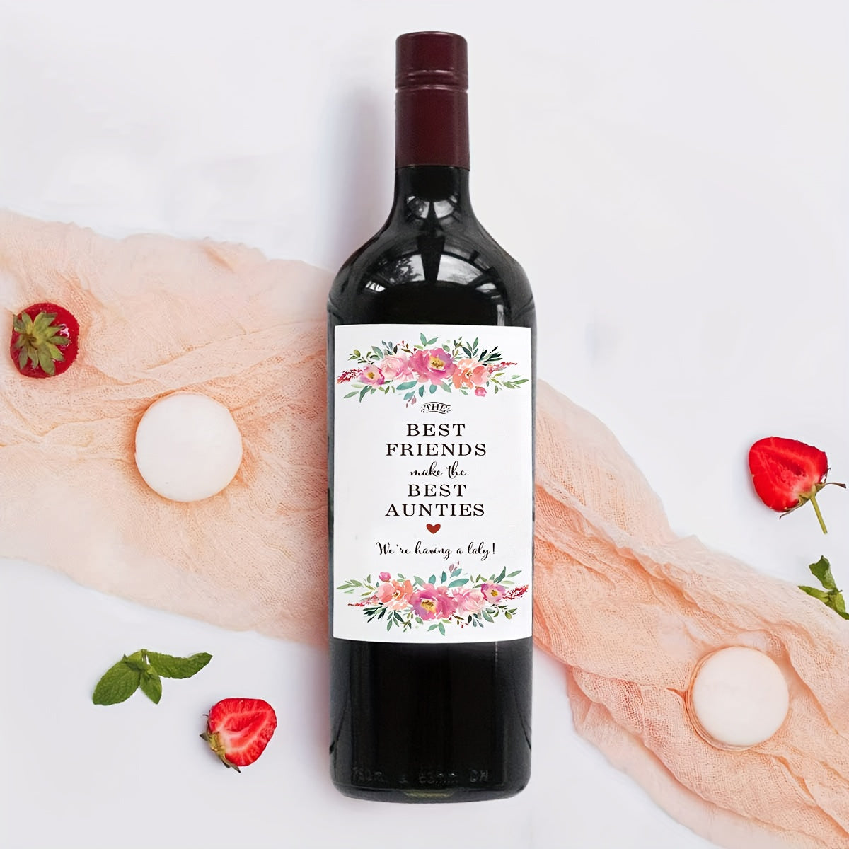 Eng yaxshi xolalar uchun mukammal sovg'a: gullar bilan bezatilgan homiladorlikni e'lon qilish uchun vino shishasi yorliqlari - 2 dona