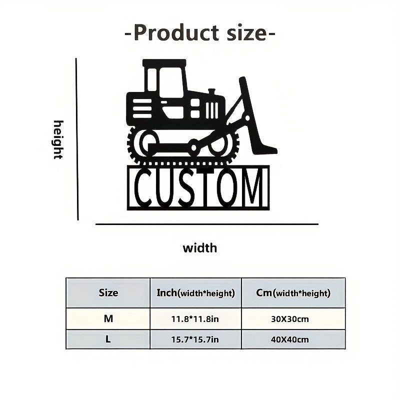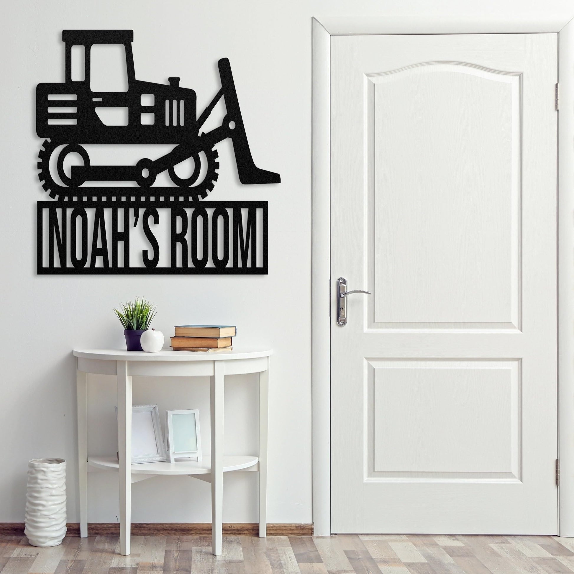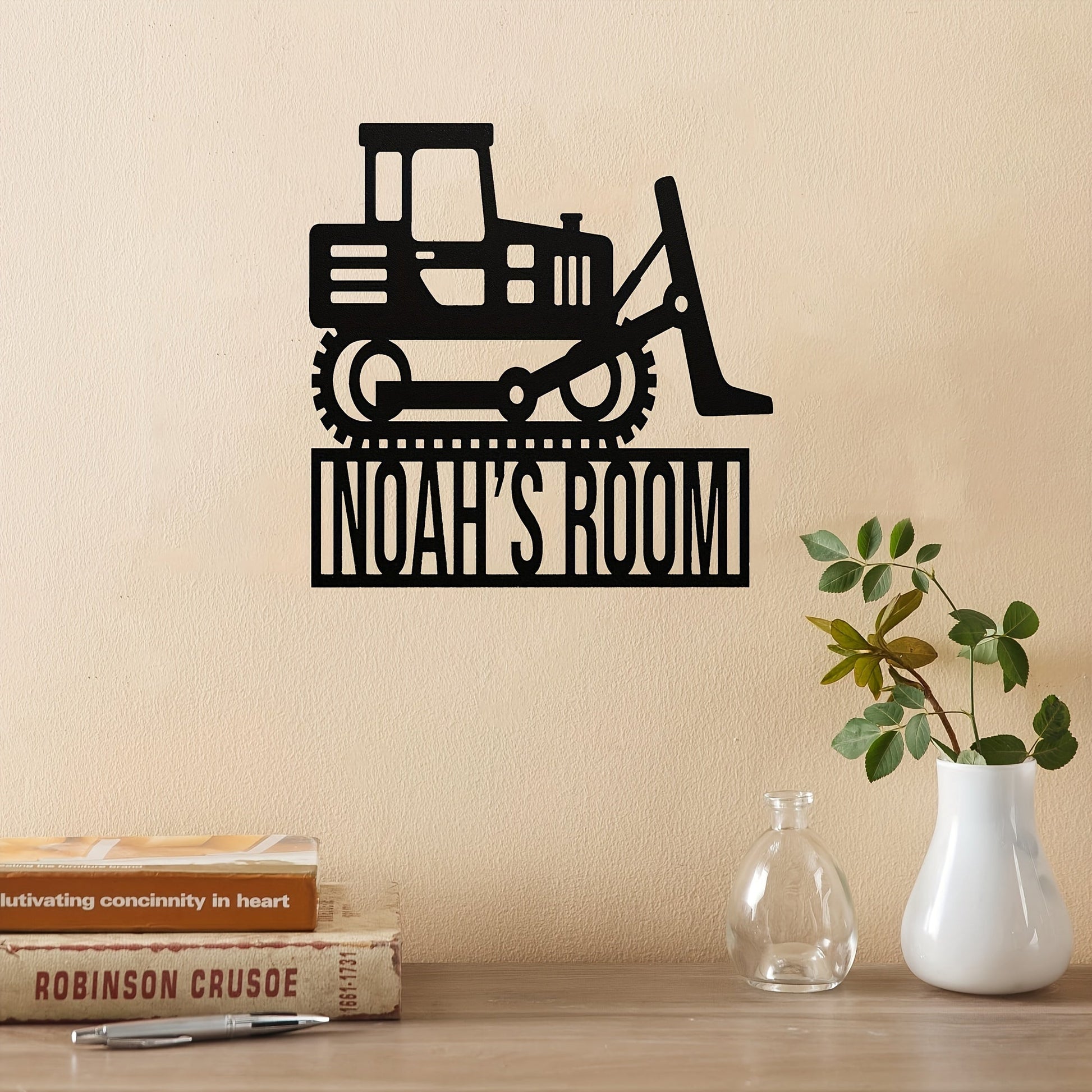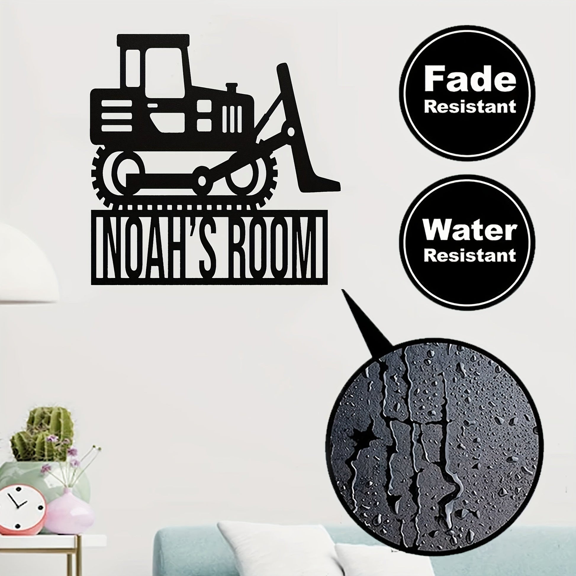 Shaxsiylashtirilgan Bulldozer Eshik Tashuvchisi - Maxsus Ism Tanlovi - Mustahkam Temir Qurilish - 14 yosh va undan katta yoshdagilar uchun mos qora metall devor san'ati - Uy va Biznes uchun Zamonaviy Yuk Mashinasi Boshlang'ich Plakasi, Ob-havoga chidamli