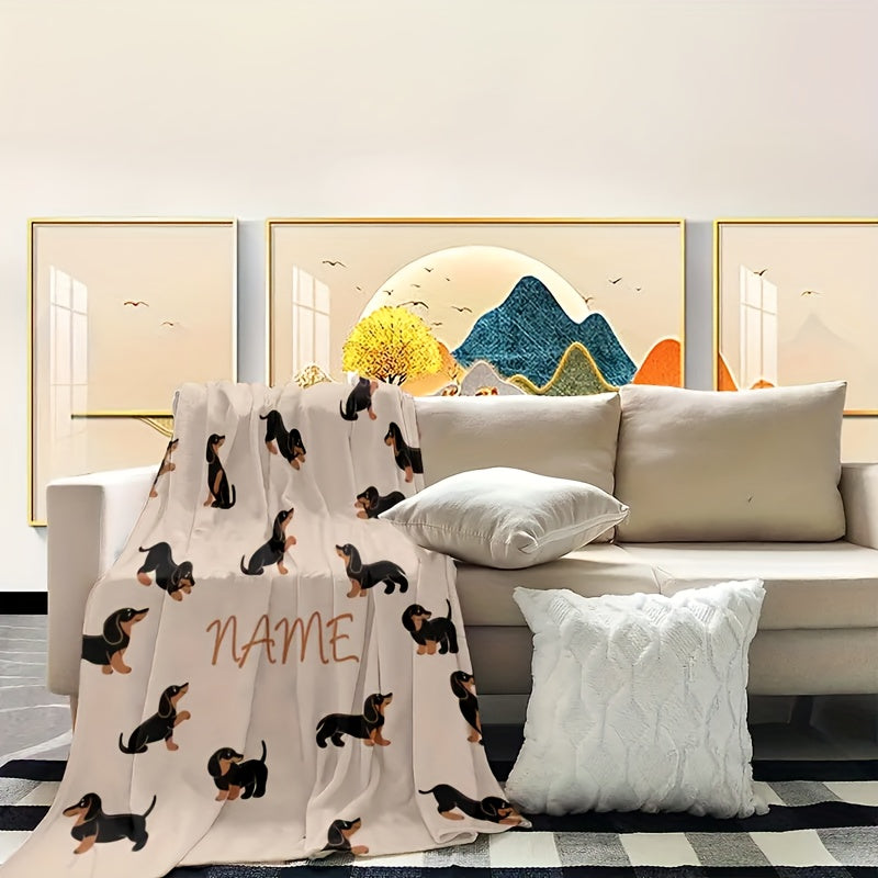 Shaxsiylashtirilgan Dachshund naqshli flanel ko'rlagi - Maxsus ism, bayramlar, tug'ilgan kunlar va boshqalar uchun mukammal! Tashqi faoliyatlar, yashash xonasi dekoratsiyasi va ofis uy hayvoni ko'rlagi uchun ajoyib. Eng yaxshi do'stlar uchun ideal sovg'a!