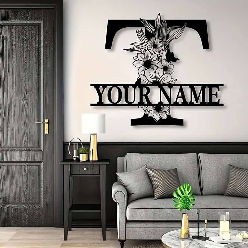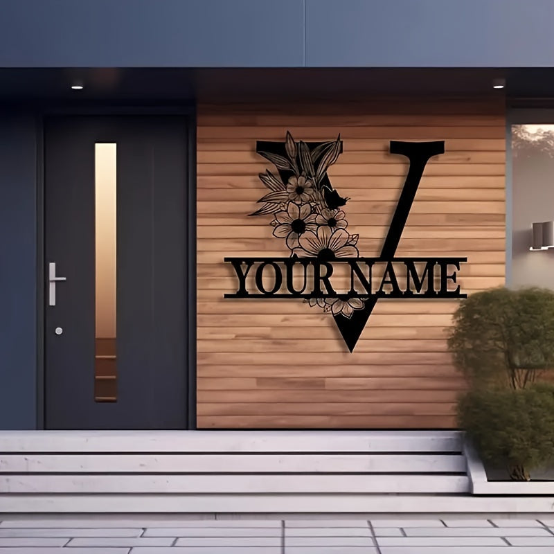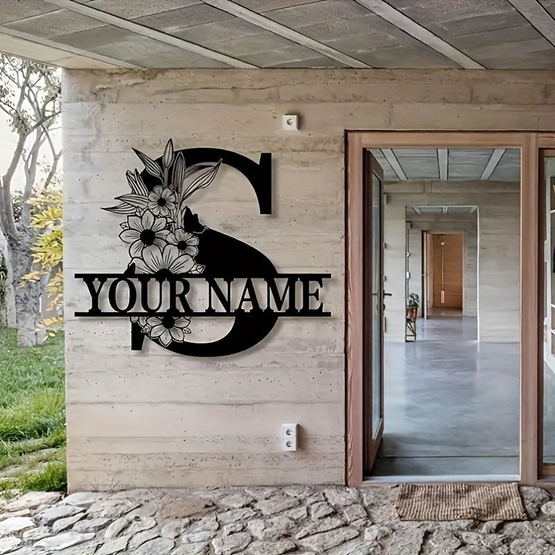 Shaxsiylashtirilgan Gul Harfi Metall Belgisi - Uy va Bog' uchun Bezak Temir Plitka, Ideal Uyga Kirish Sovg'asi