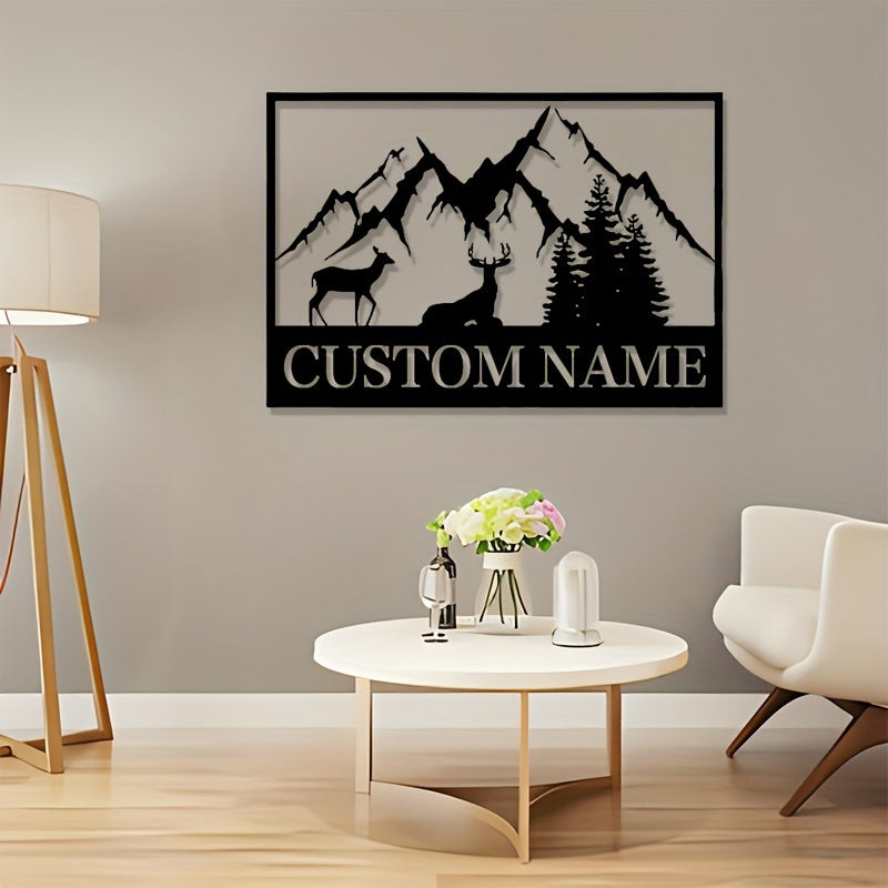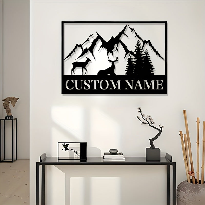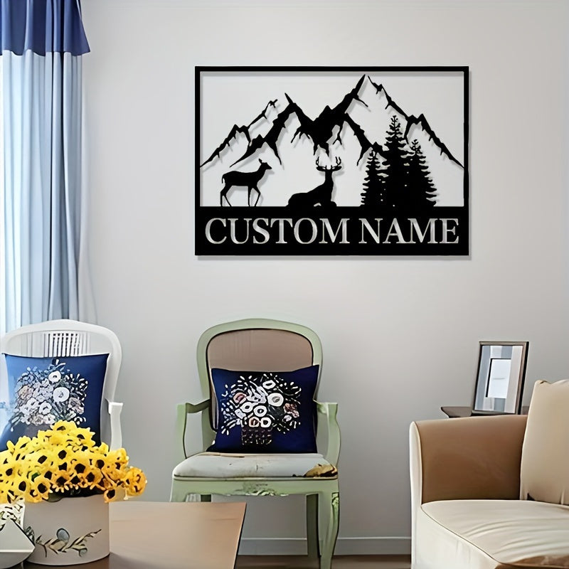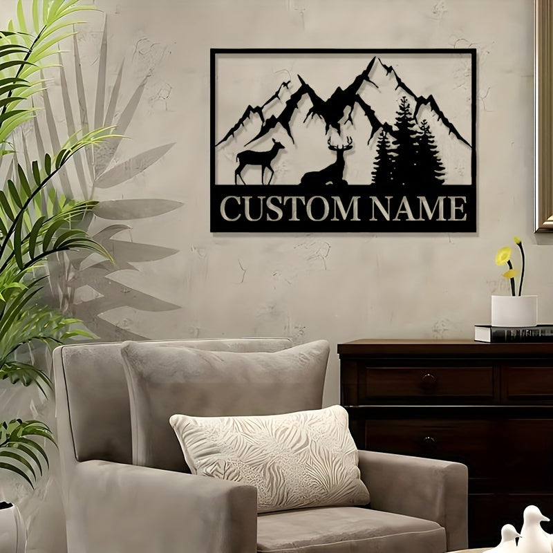 Shaxsiylashtirilgan Metall Devor San'ati - Rustik Buzoq va Tog' Oila Ismi Belgisi Uy Dekoratsiyasi Uchun - Yashash Xonasi, Hammom yoki Bar Uchun Ajoyib - Mukammal Uyga Kirish Sovg'asi