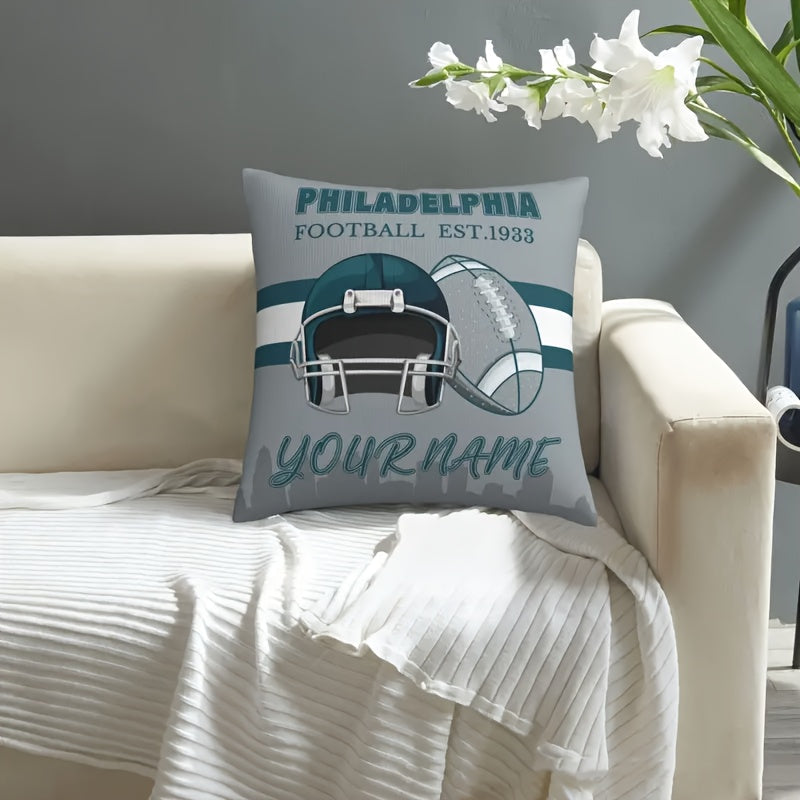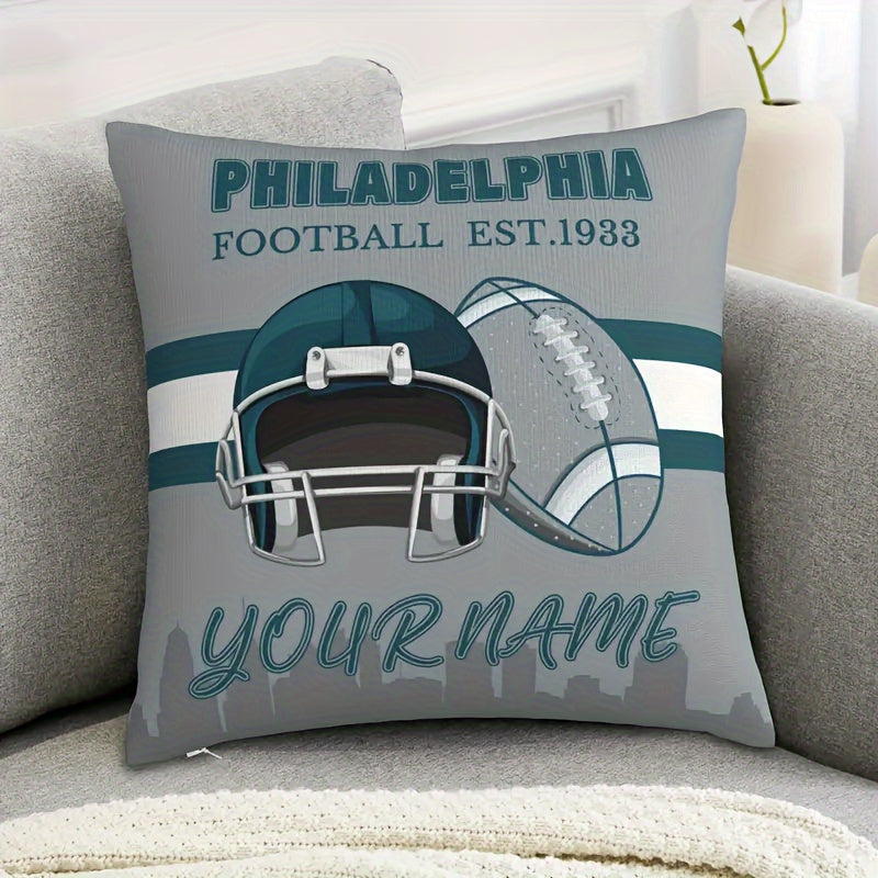 Shaxsiylashtirilgan Filadelfiya Futbol Ishqiboz Pillow Cover - Maxsus Dizayn, Ideal Uniseks Sovg'a, Polyesterdan Yasalgan, Kvadrat Shakl, Turli Ranglar