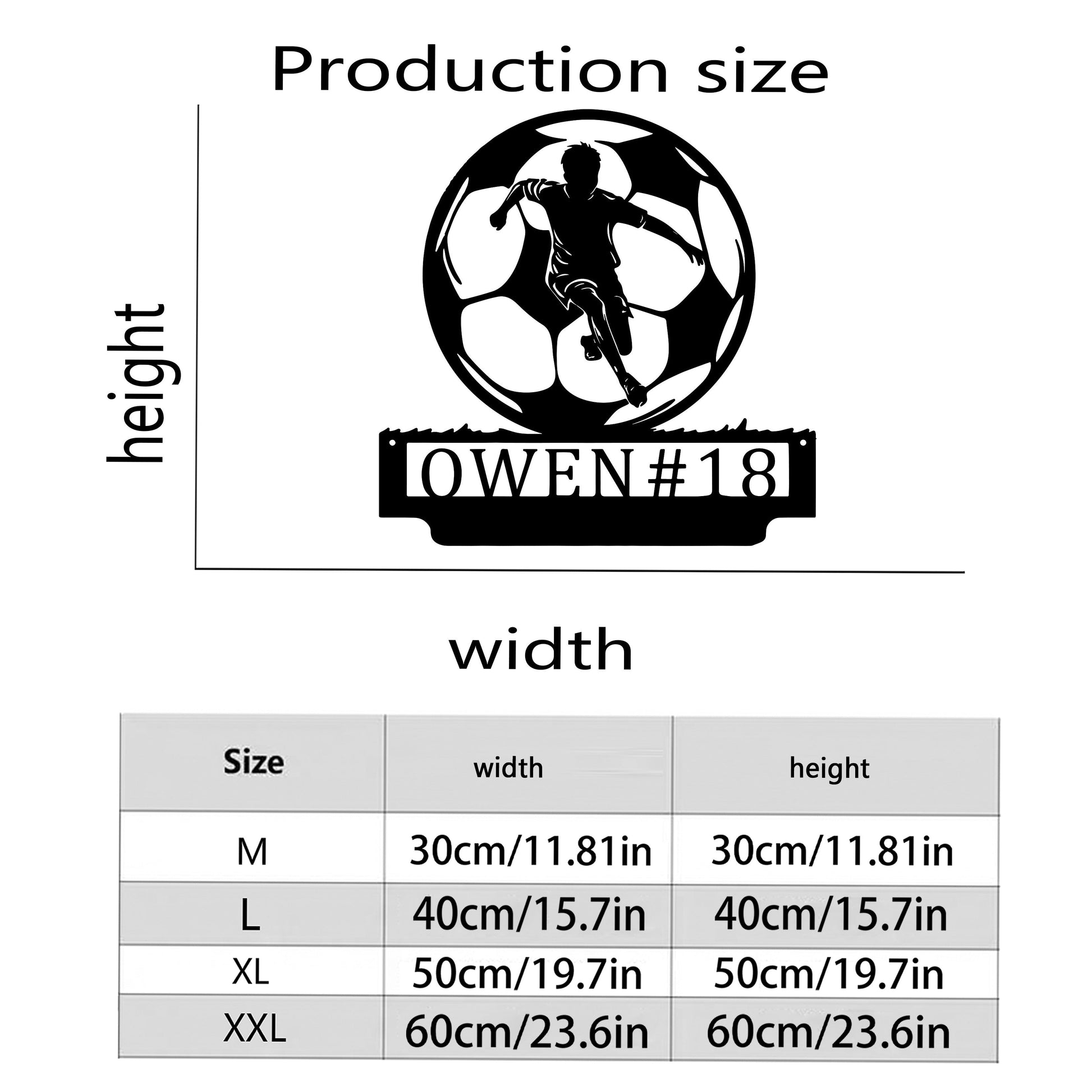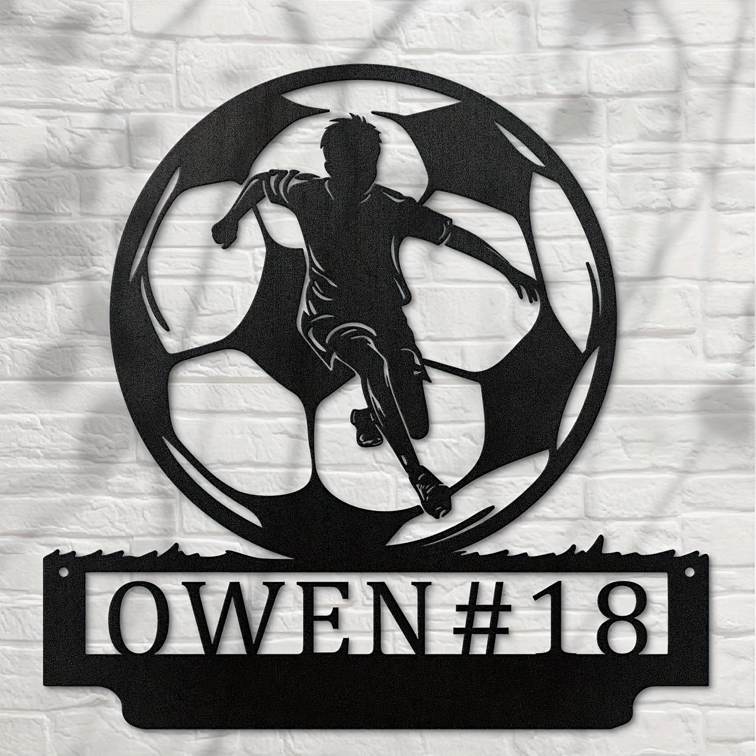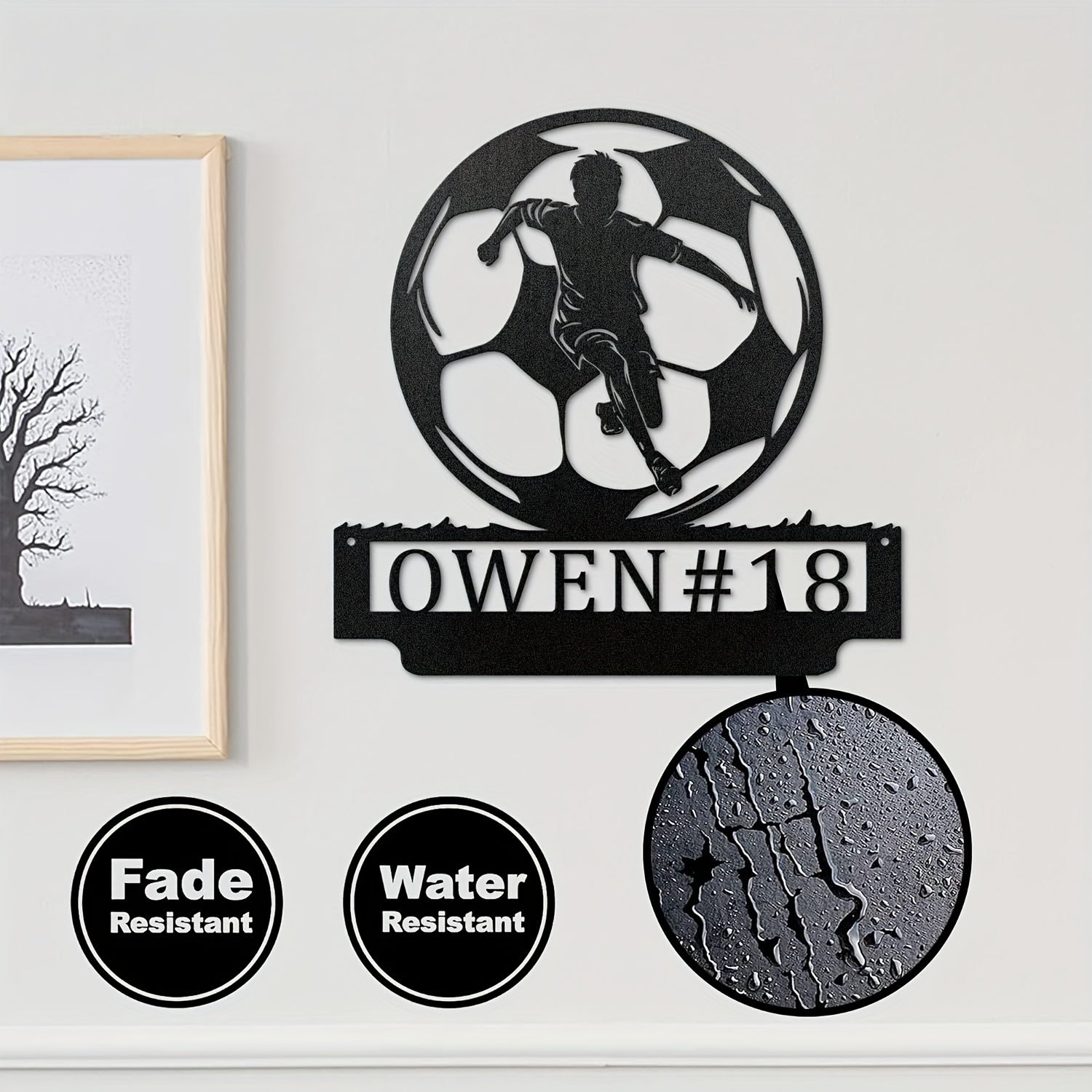 Shaxsiylashtirilgan Futbolchi Metall Eshik Qopqog'i Devor Bezaklari - Sport Mavzusidagi Temir San'at, Ism va Raqam bilan Moslashtirilgan, O'smir Yotoqxonalari, Erkaklar Burchaklari va Partiyalar uchun Mukammal, Qora Rangda - 14+ Yoshlar uchun Mos