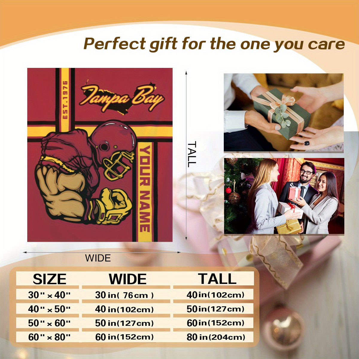 Shaxsiylashtirilgan Tampa Bay Futbol Jamoasi Kiyimi, Ismingiz bilan Moslashtiriladigan, Qulay Trikotaj Polyester O'rash, Elektrsiz Sizni Isitadi, To'rtburchak Dizayni, Ideal Fan Sovg'asi