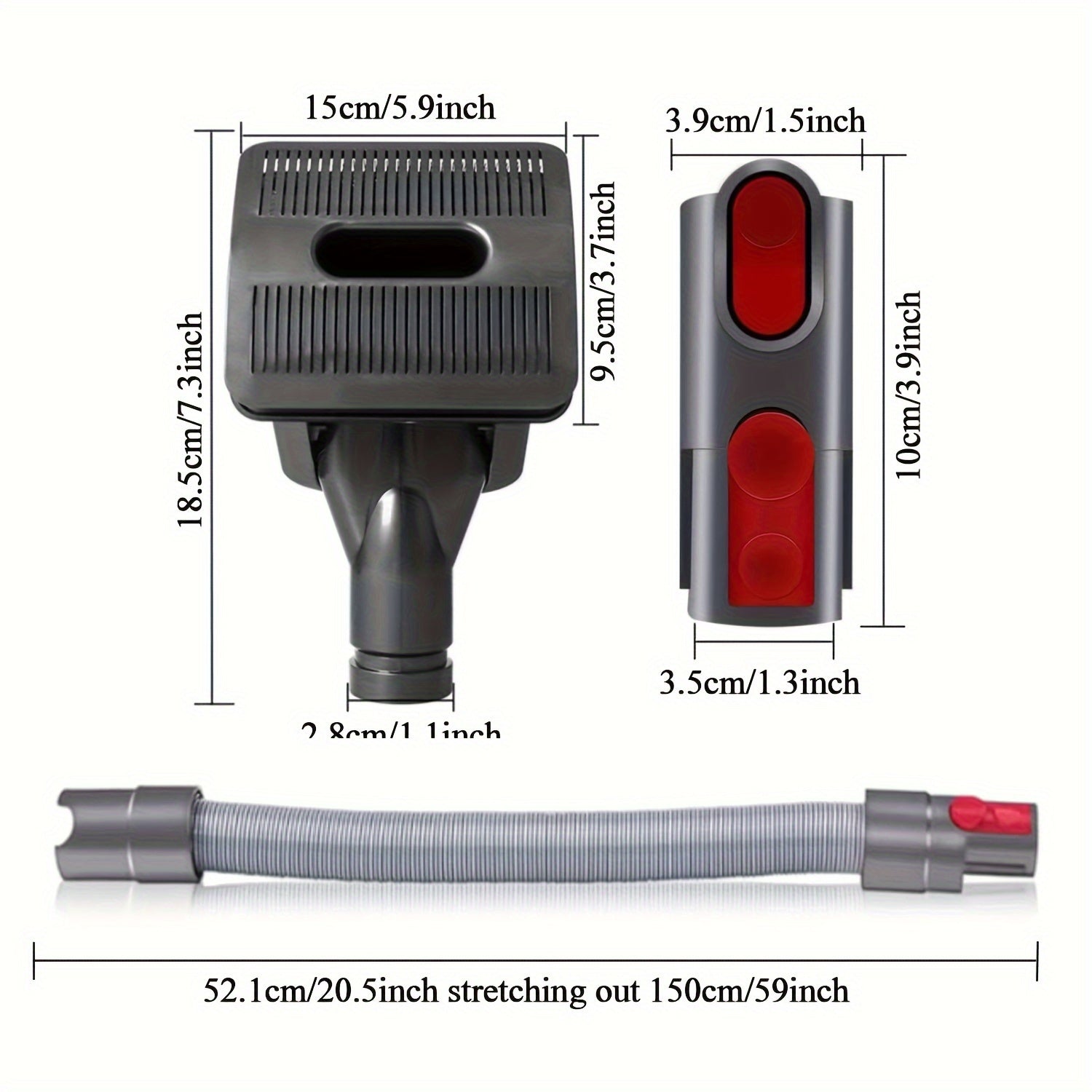 Uy hayvonlarini parvarish qilish cho'tkasi va mashhur vakuum brendlari bilan mos keladigan uzatma shlangi - itlar uchun mukammal, V11, V10, V8 va V7 modellari uchun mos.