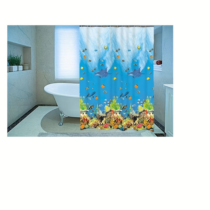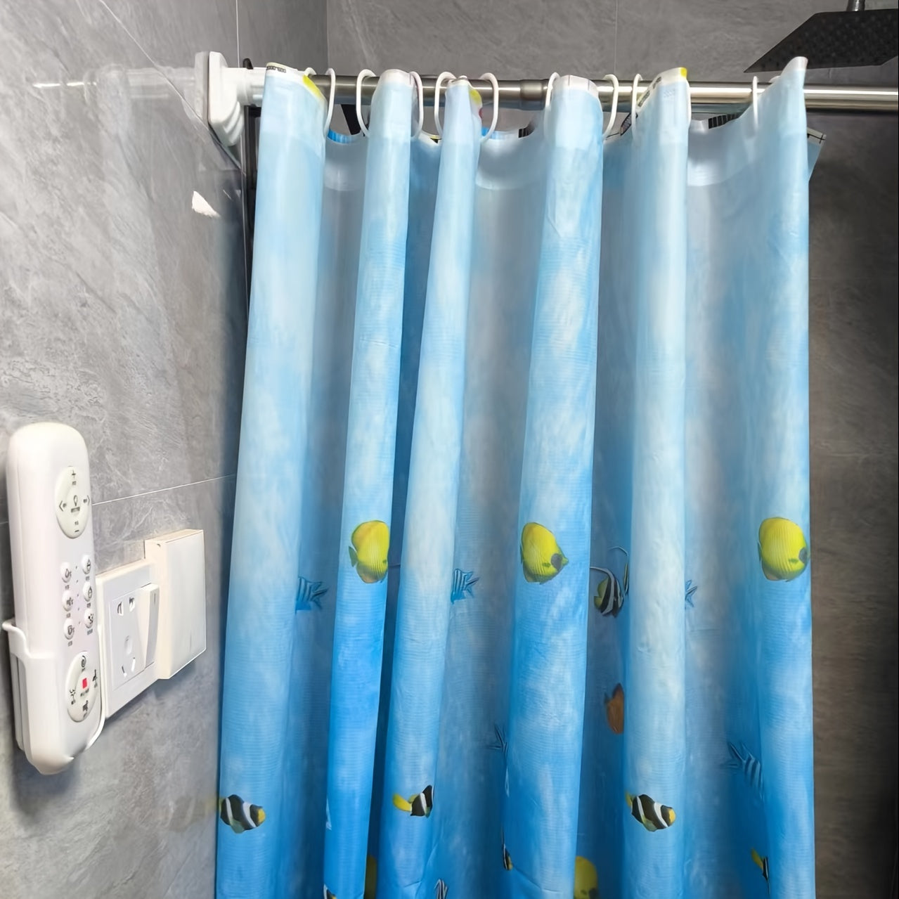 PEVA dush pardasi bo'linma bilan, suv o'tkazmaydigan, namlikka chidamli, dog'ga chidamli, teshik ochish talab qilinmaydi va 12 ta bepul ilgichni o'z ichiga oladi.