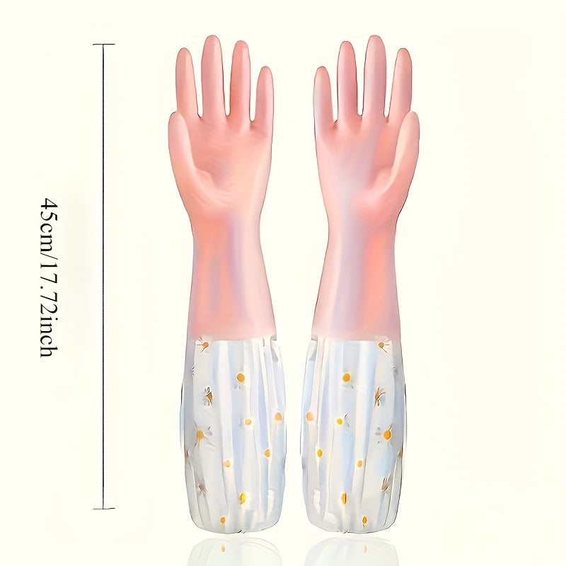 Pushti gullar naqshli PVC tozalash qo'lqoplari - Mustahkam, suv o'tkazmaydigan, sirpanmaydigan ushlash - Oshxona, kir yuvish, hammom va uy ishlariga mukammal