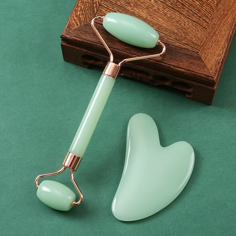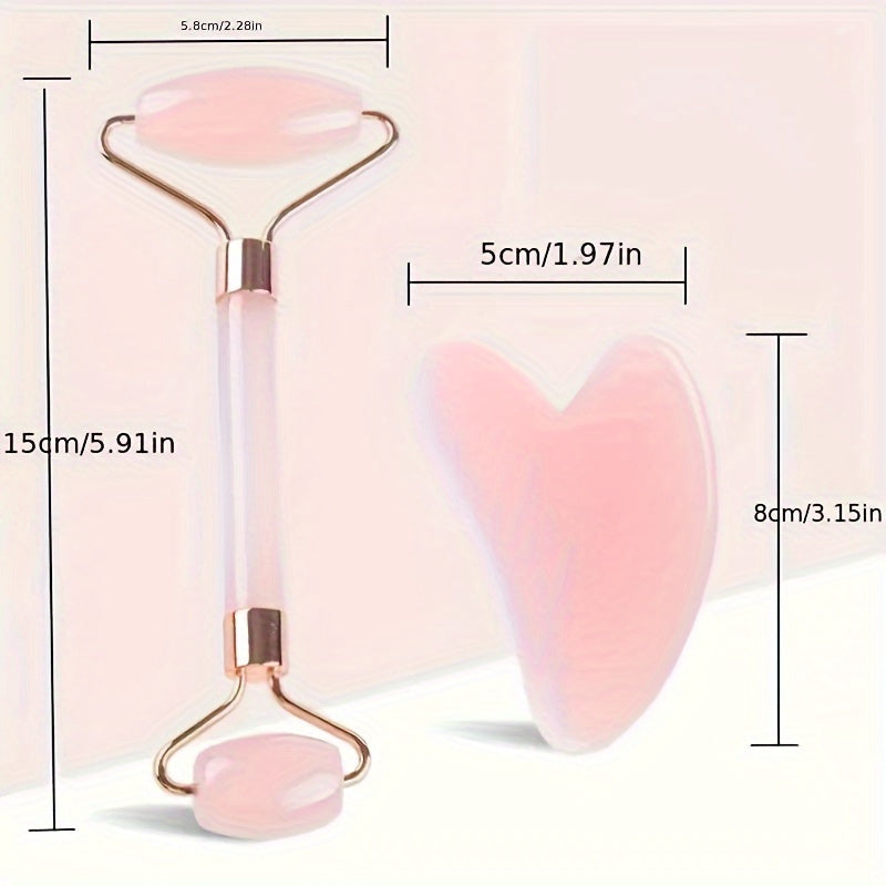 Yuz massaji uchun pushti Gua Sha roliki va qirqish taxtasi to'plami