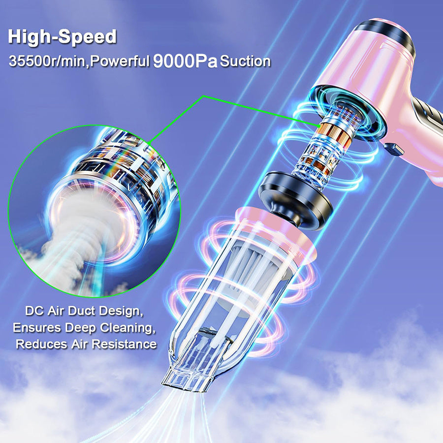 Pushti qo'l vakuum tozalagich, yuqori quvvatli 45W - simsiz va portativ, nam va quruq tozalash uchun kuchli so'rish. USB orqali zaryadlanadi, chang cho'tkasi bilan birga keladi.
