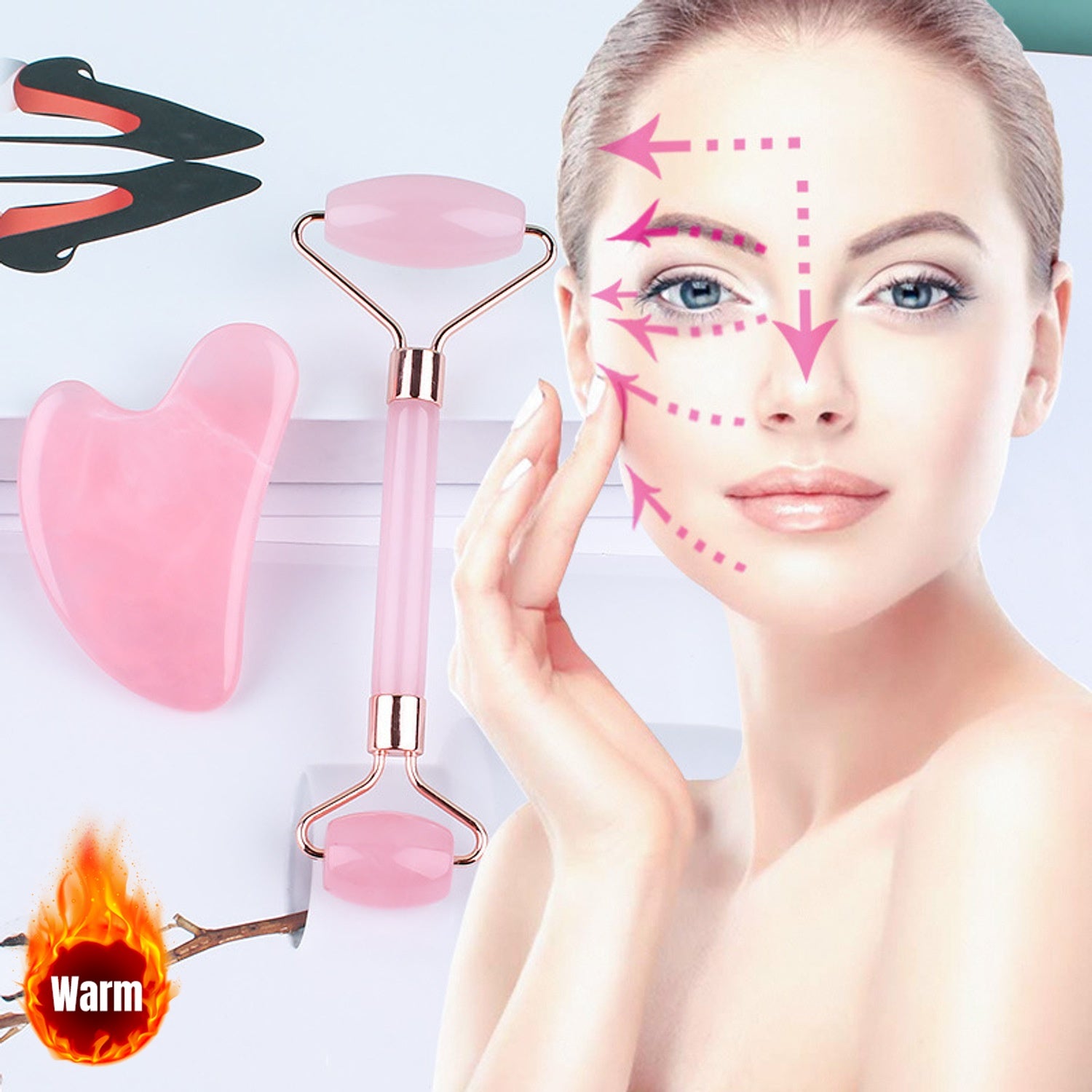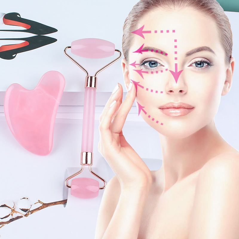 Pushti Jade Yuz Rulosi To'plami, Go'zallik va Salomatlik uchun Qo'l Gua Sha Qirqish Asboblari bilan