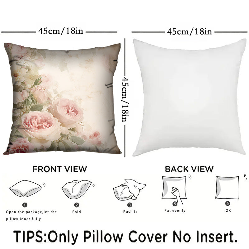 Rangli güllü pushti gülchalar uchun 2 ta to'plam, 45.72 sm kvadrat, polyester bezakli yostiq qopqog'i