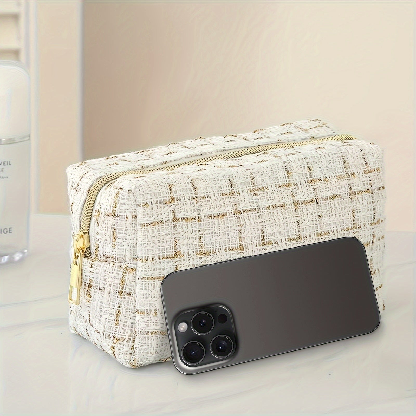 Plaid kosmetik fermuarlı sumka, sayohat makiyaj sumkasi
