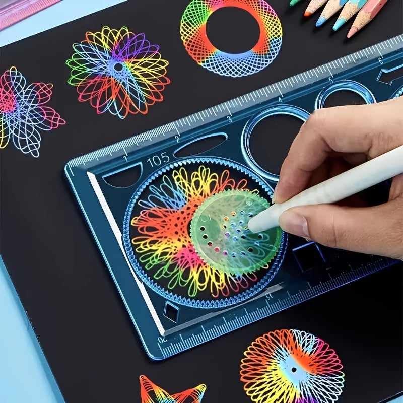 San'atkorlar va ofis jihozlari uchun markerlar va shablonlar bilan plastik DIY chizish qoidasi to'plami.